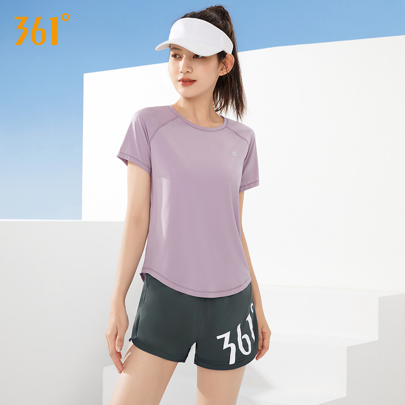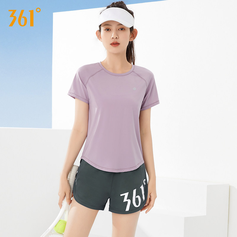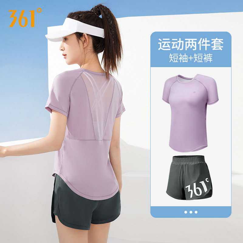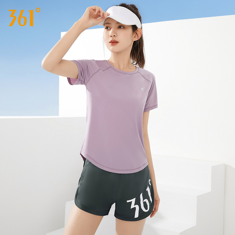 361运动上衣短袖t恤夏季紫色网纱运动服羽毛球健身服跑步瑜伽服女