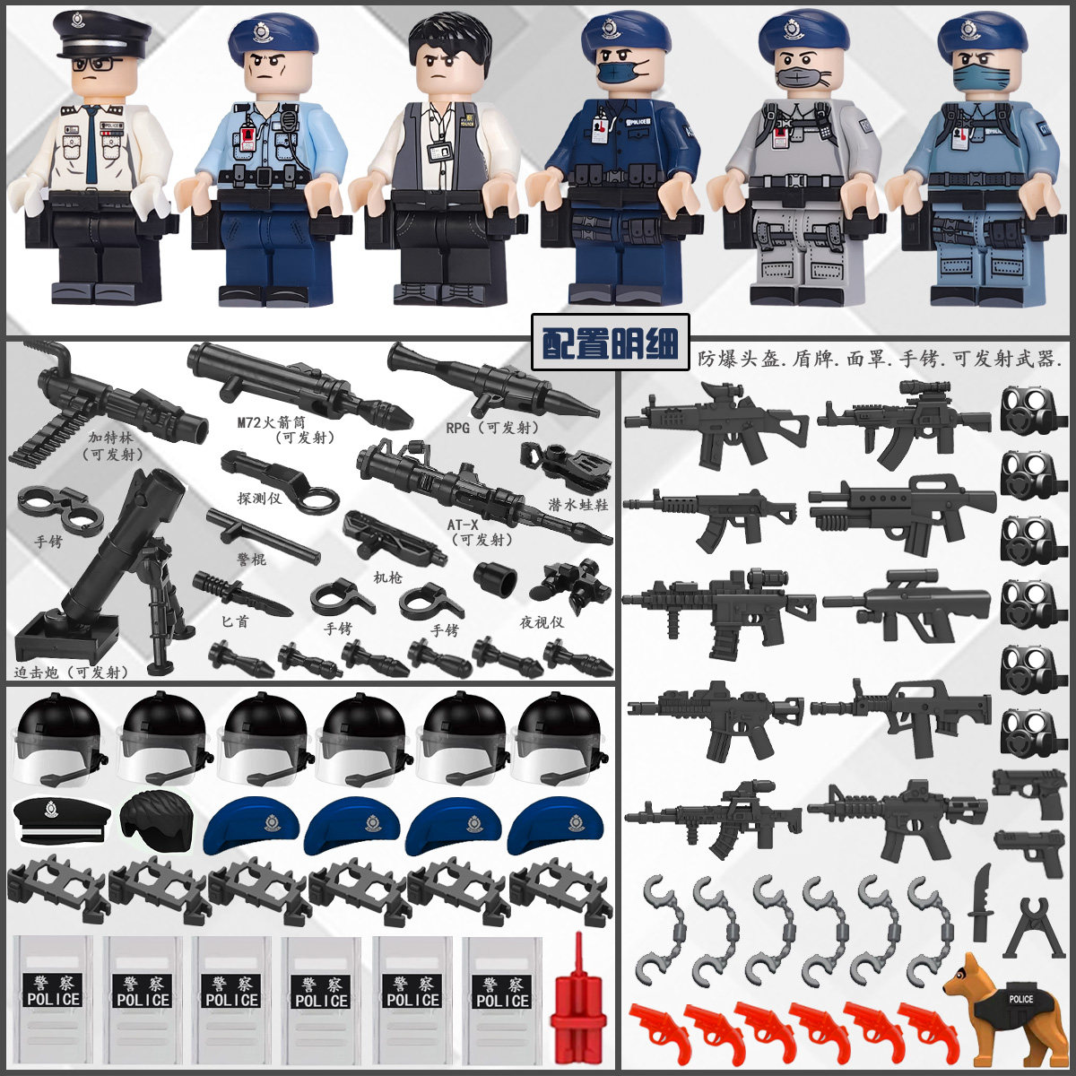 香港警察积木PTU飞虎队CID探员特警特种兵人仔男孩拼装军事玩具