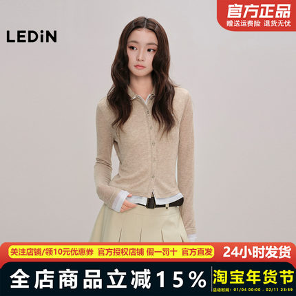 乐町撞色假两件长袖T恤秋季新款胸口绣标拼接双层门襟修身打底衫