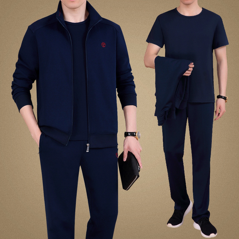 运动套装男春秋季休闲三件套运动服大码爸爸秋装套装男卫衣跑步服