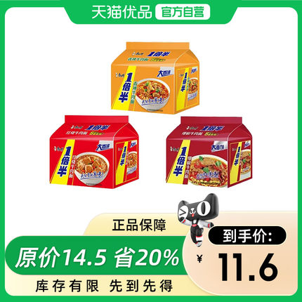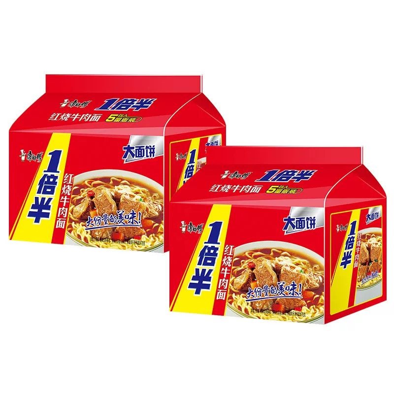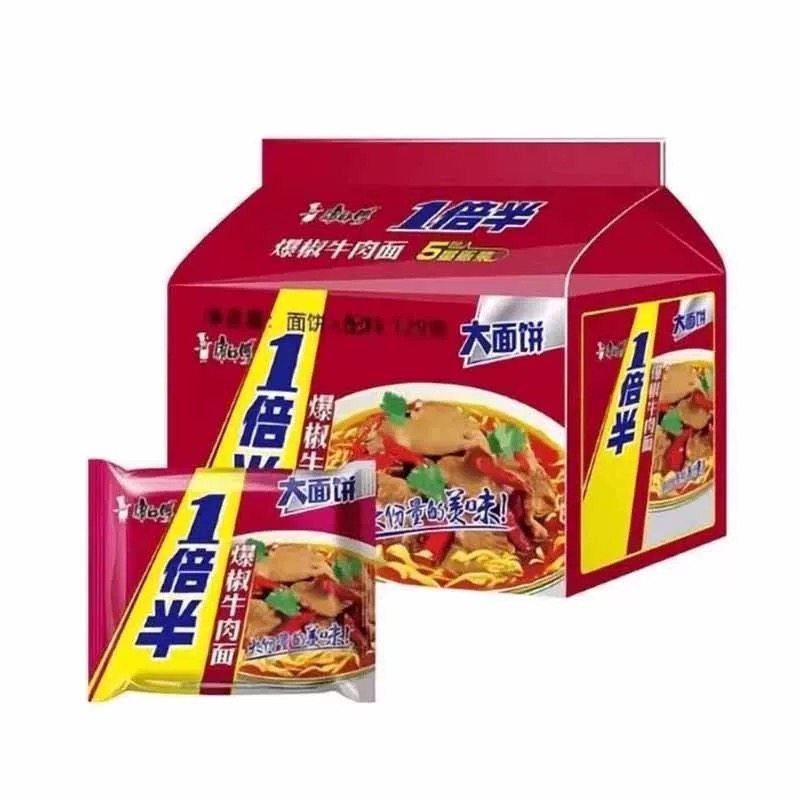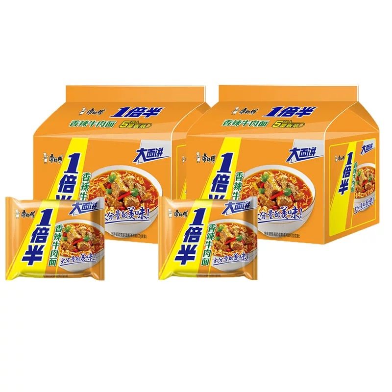 康师傅一倍半红烧牛肉面多口味香辣爆椒五连包方便面宵夜袋装泡面