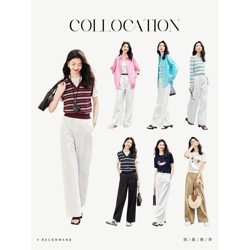 OSA欧莎梨型通勤神裤黑色休闲裤女直筒裤子2025新款春夏阔腿长裤