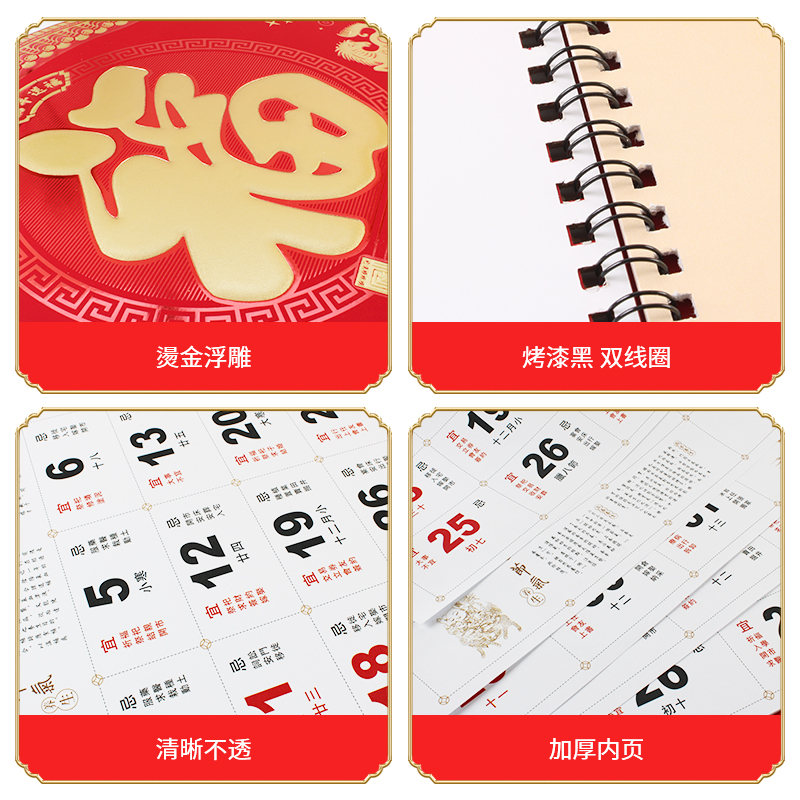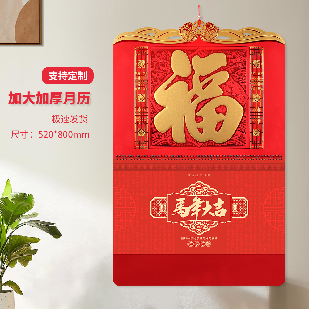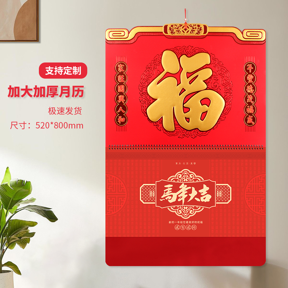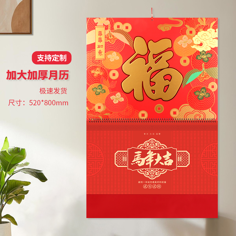 加厚加大四开2026年挂历中国红福字吊牌日历月历挂墙手撕定制logo