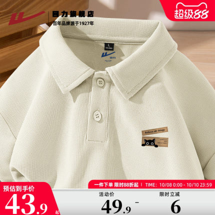 回力华夫格polo衫男款夏季复古潮牌翻领t恤短袖宽松休闲男装上衣K
