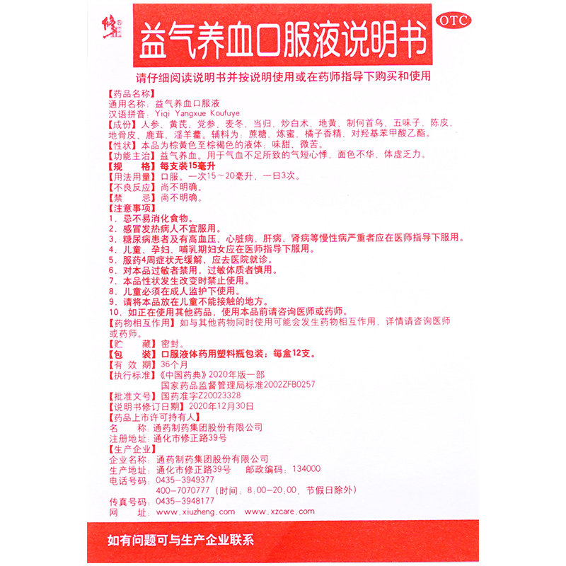 【修正】益气养血口服液15ml*12支/盒