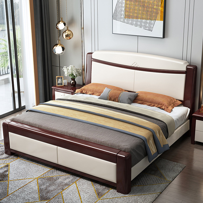 源氏木语现代简约全实木床白色1.5m单双人1.8米奶油风高箱储物主