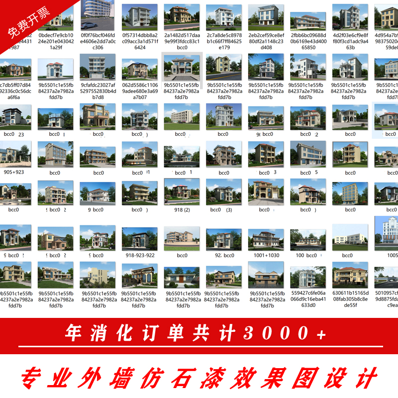 别墅建筑外墙仿石漆瓷砖涂t料装修农村自建房外观效果图3D设计制