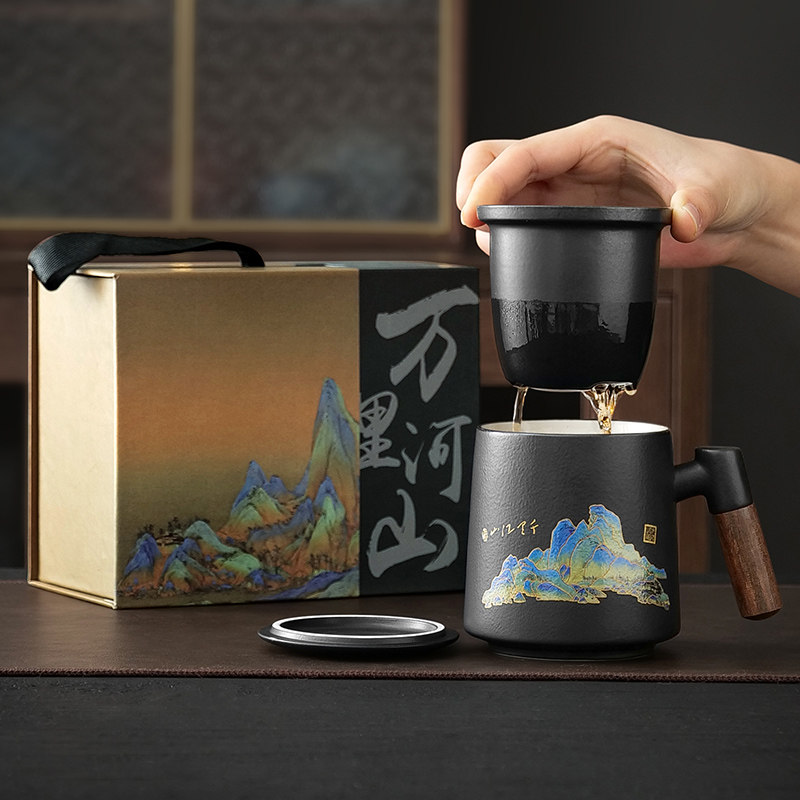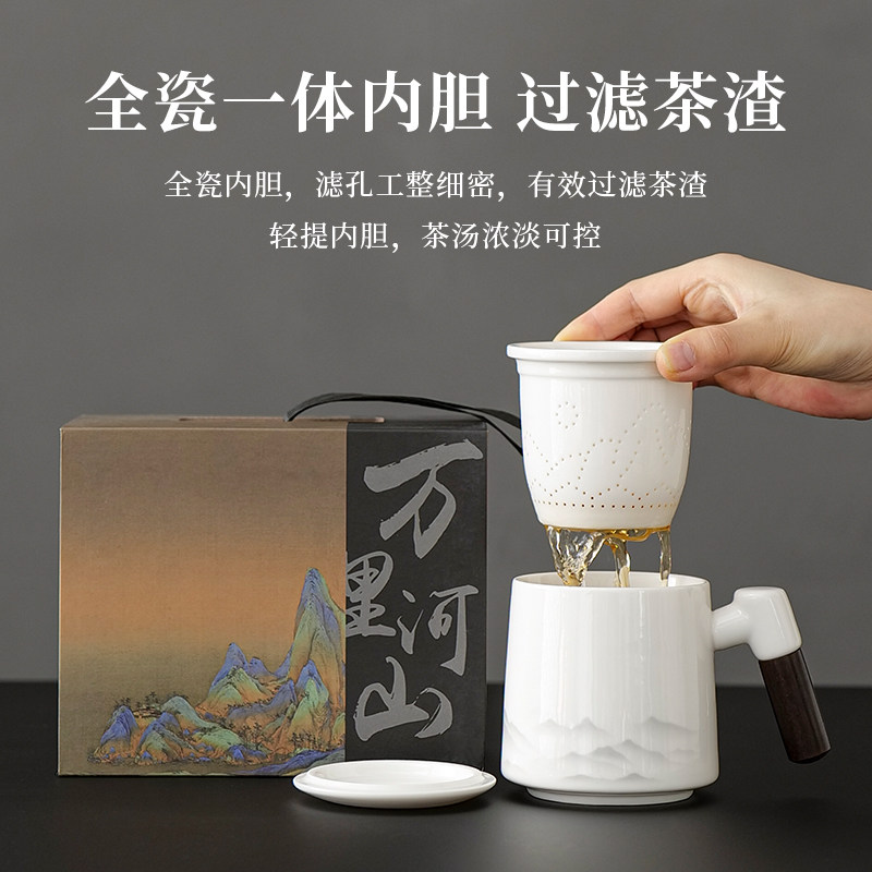 国潮陶瓷茶水分离泡茶杯子个人专用办公室茶道杯高档礼盒水杯喝水