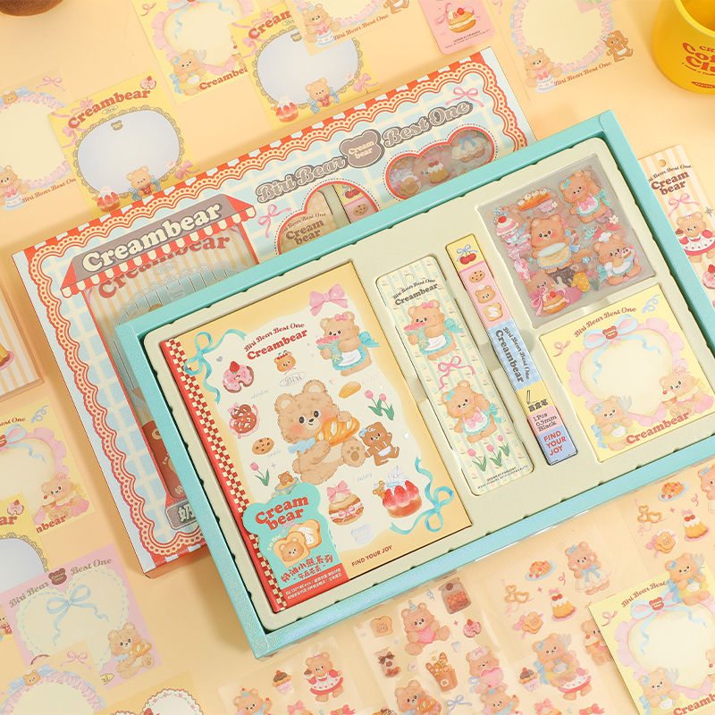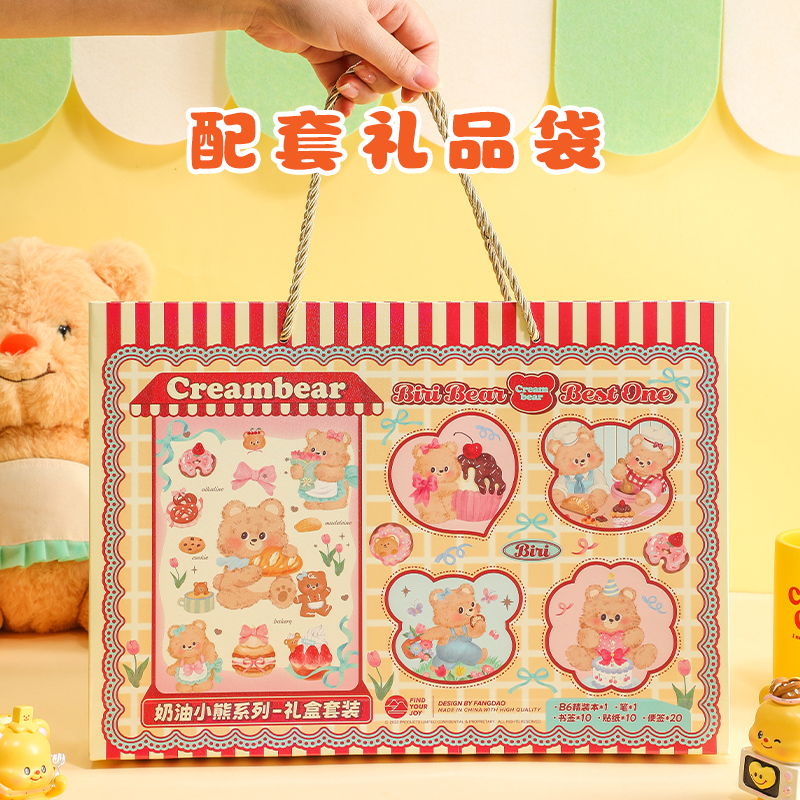 奶油小熊卡通可爱手帐本文具礼盒套装2024年新款女孩儿童奖品生日礼物日记本精美高颜值小学生笔记本子大礼包