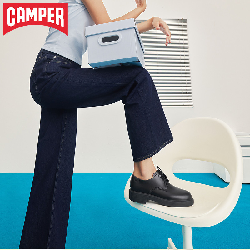 Camper看步女鞋Dean复古英伦风黑色小皮鞋单鞋拼色早秋圆头德比鞋