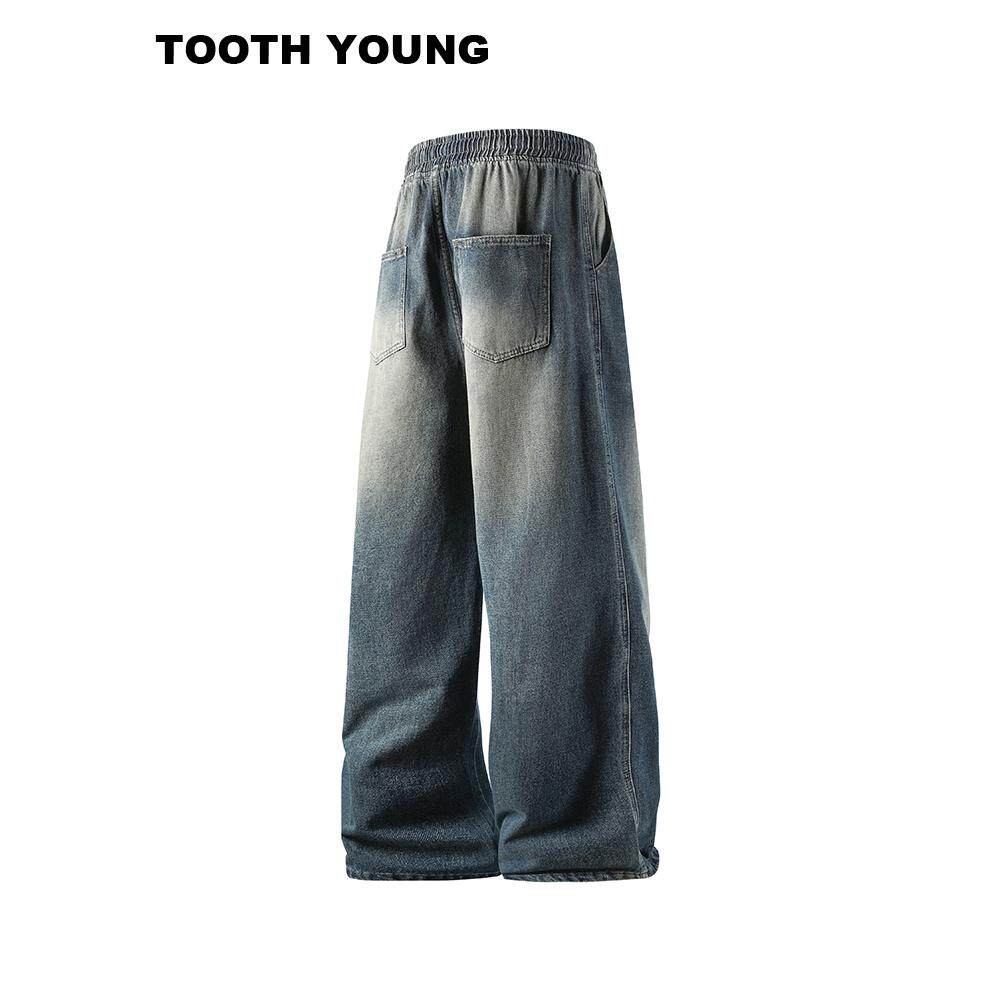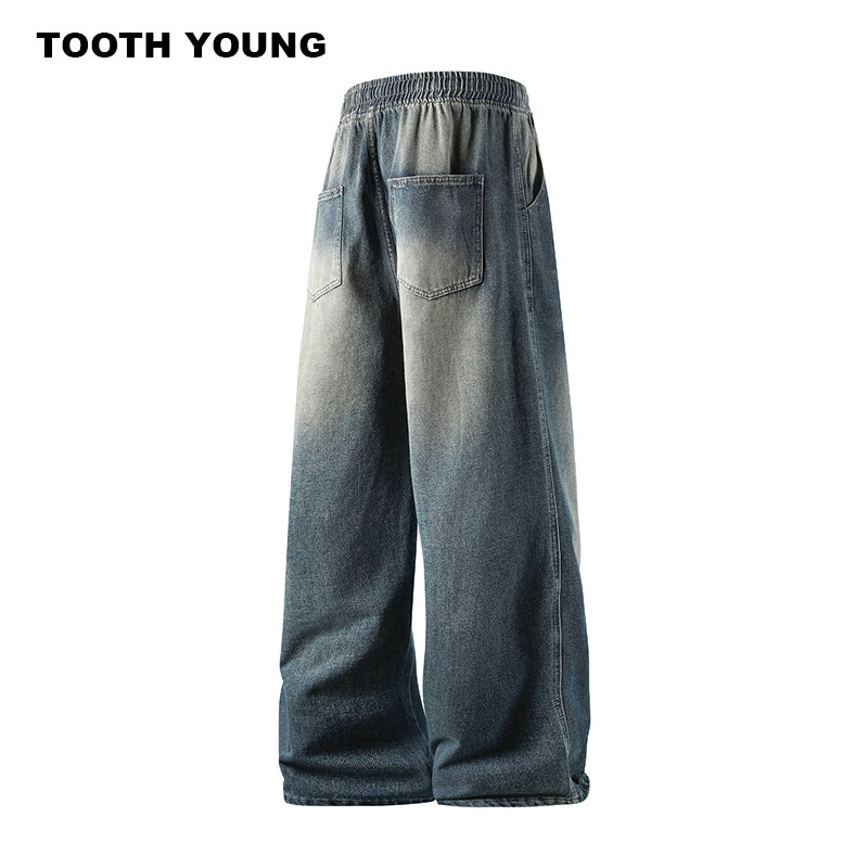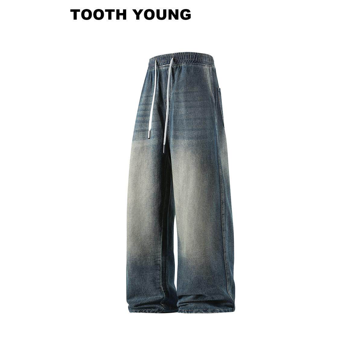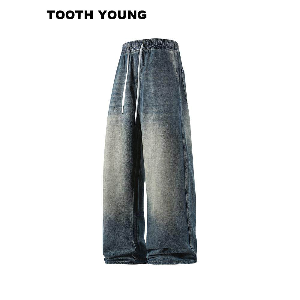 郑一爱穿搭【牛仔裤的酷】水洗做旧松紧腰宽松休闲裤男冬季长裤