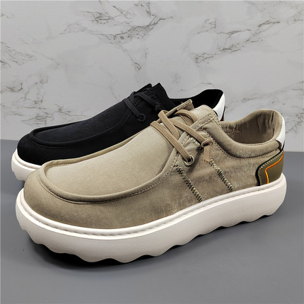商场同款一脚蹬脚垫真皮休闲鞋男2025夏季新款时尚轻便透气布鞋潮