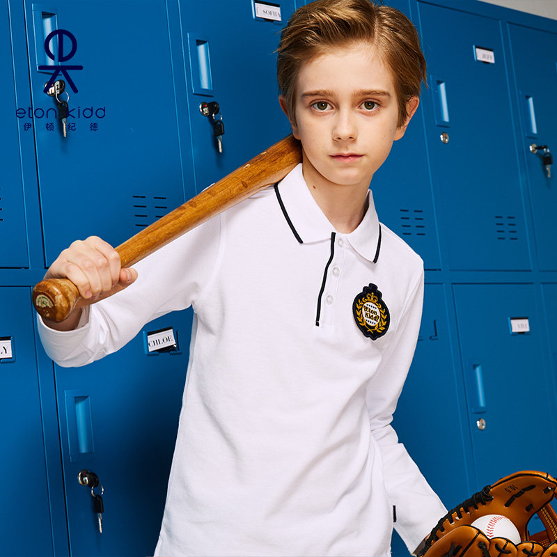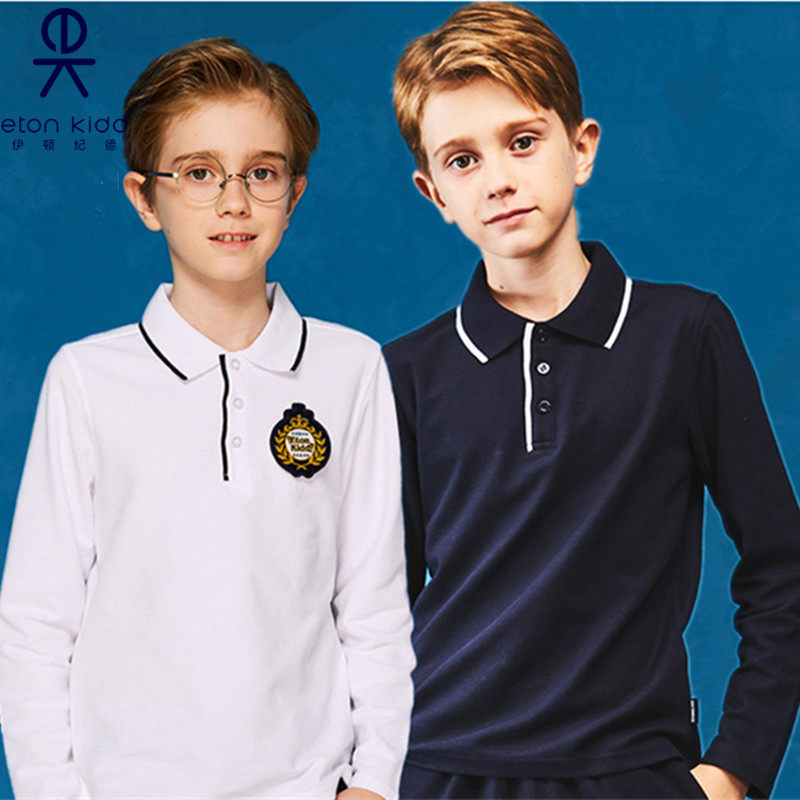 伊顿纪德校服男女童长袖T恤中小学生春秋款翻领T恤学院班服15T110