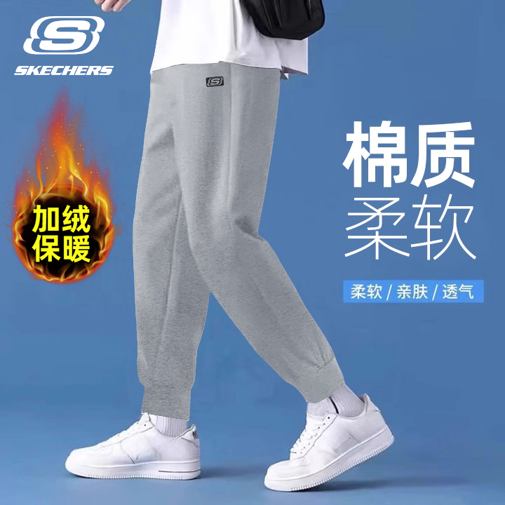 斯凯奇加绒运动裤男裤2025冬季新款加厚保暖束脚卫裤黑色针织长裤
