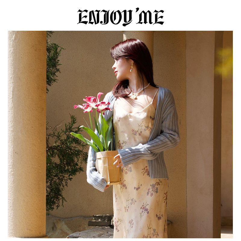 ENJOYME商场同款法式复古碎花吊带连衣裙女夏季气质收腰显瘦长裙