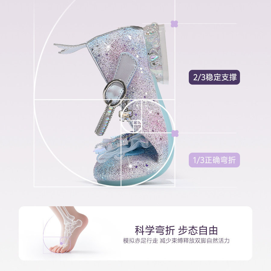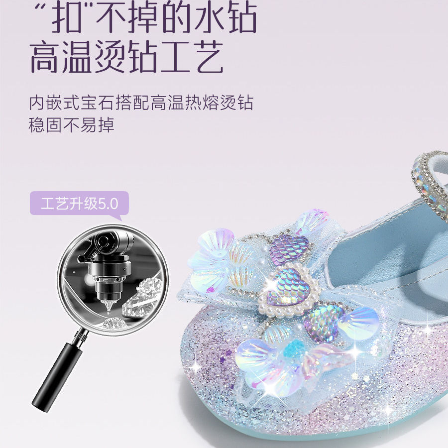 真皮女童水晶公主鞋高跟鞋爱莎鞋