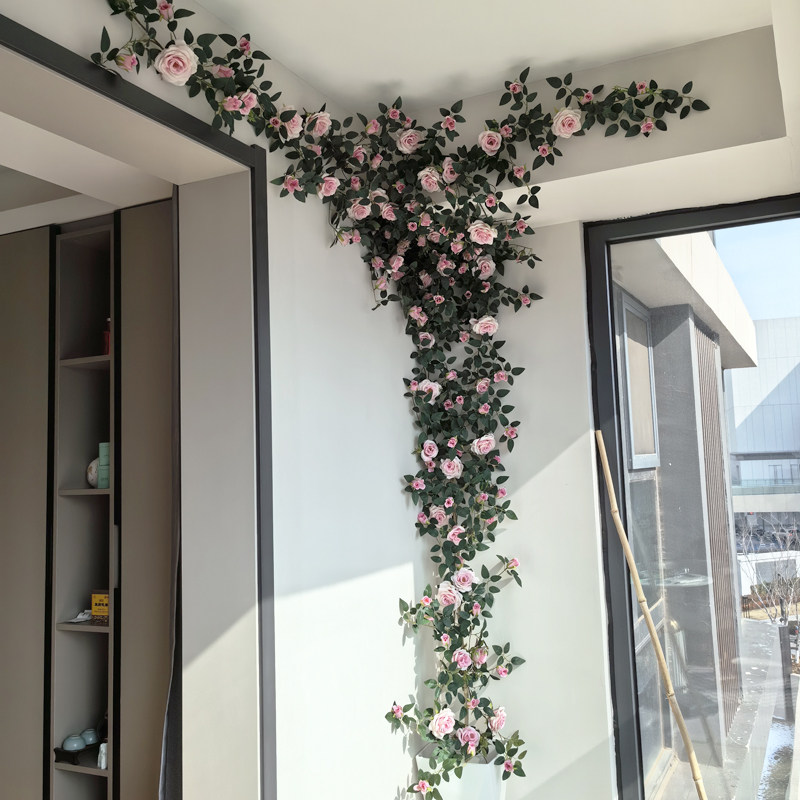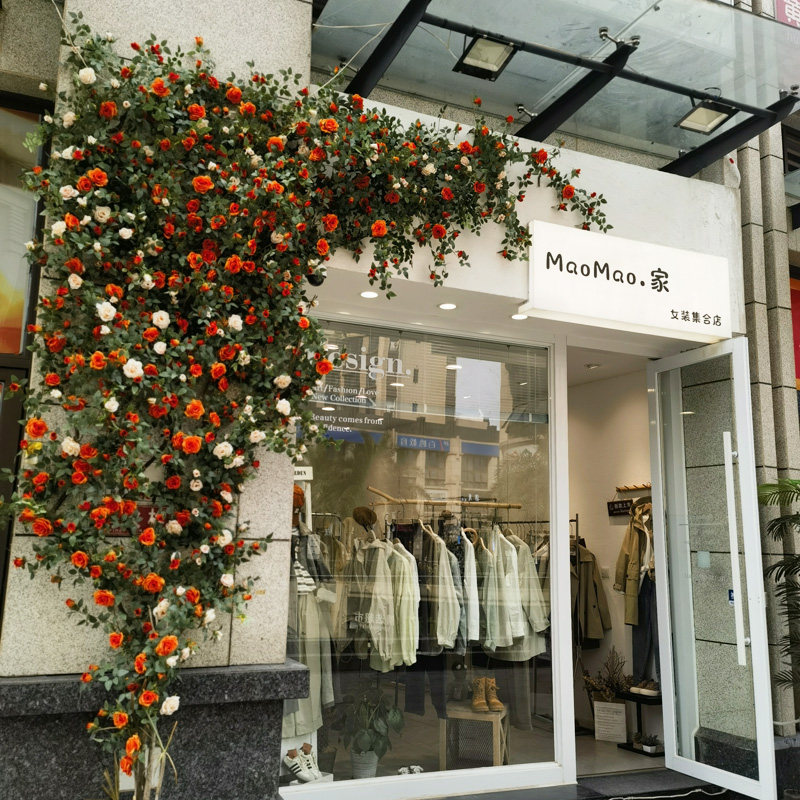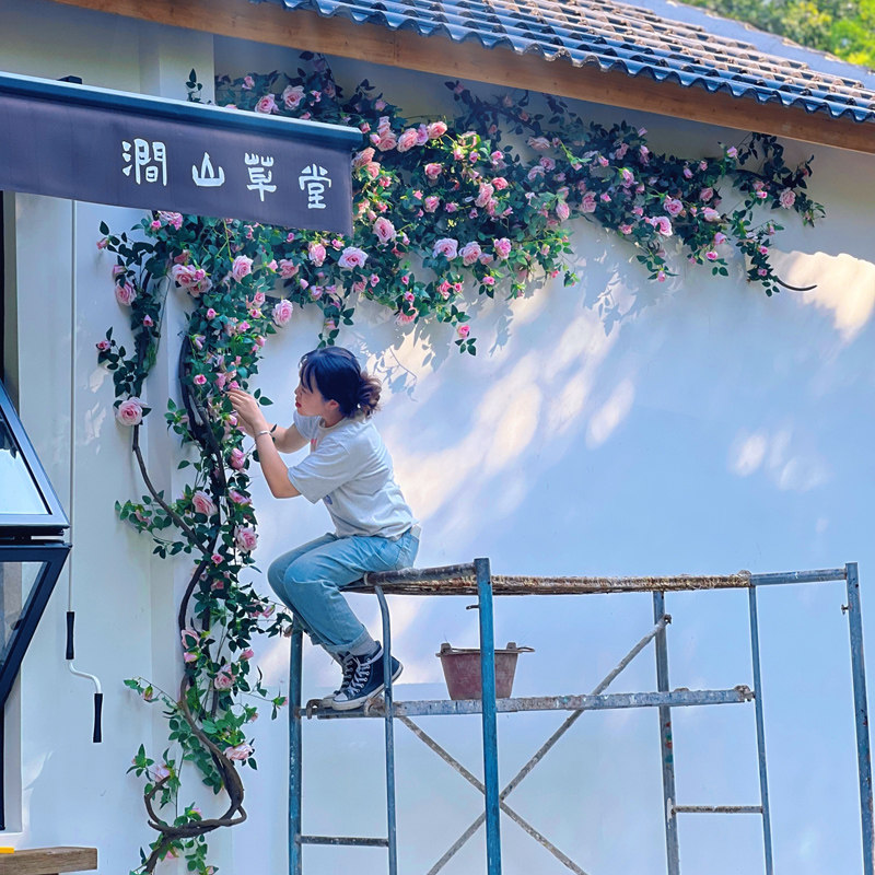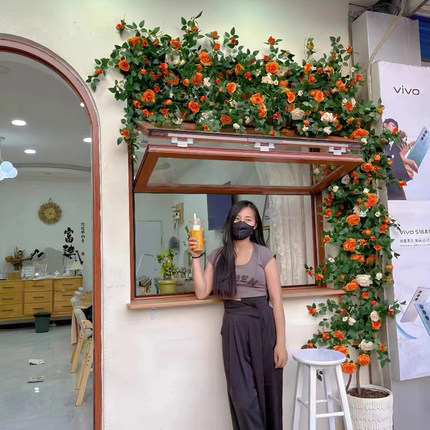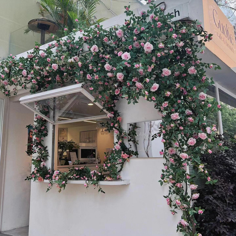 仿真玫瑰花藤条门头装饰花墙网红拍照打卡玫瑰墙管道装饰藤蔓花艺