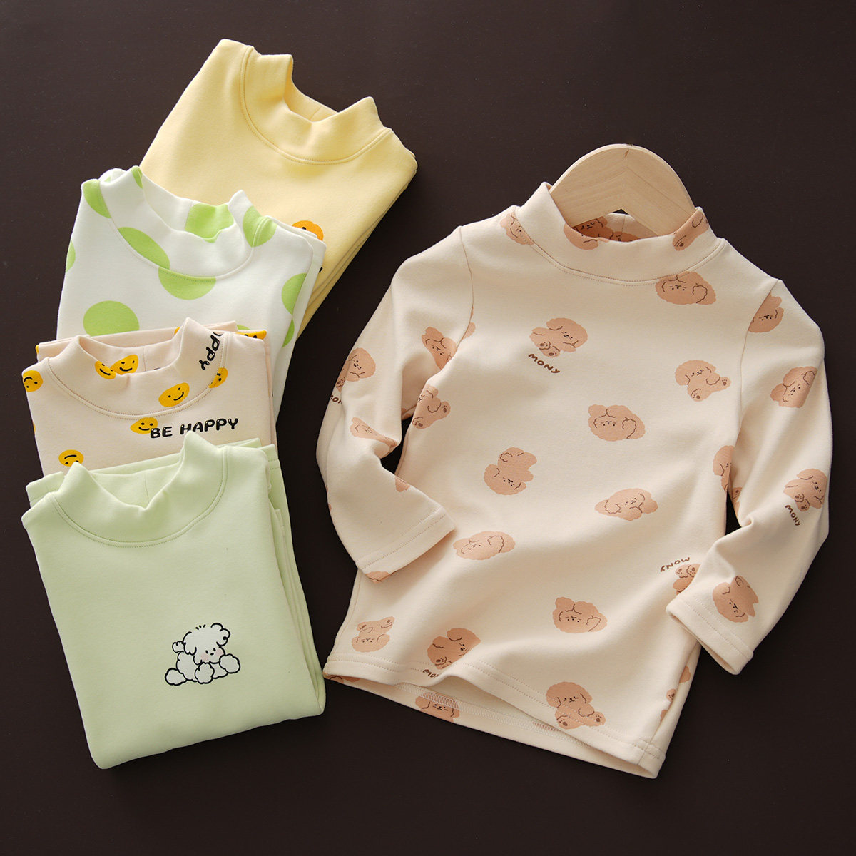 磨毛长袖儿童打底衫半高领T恤