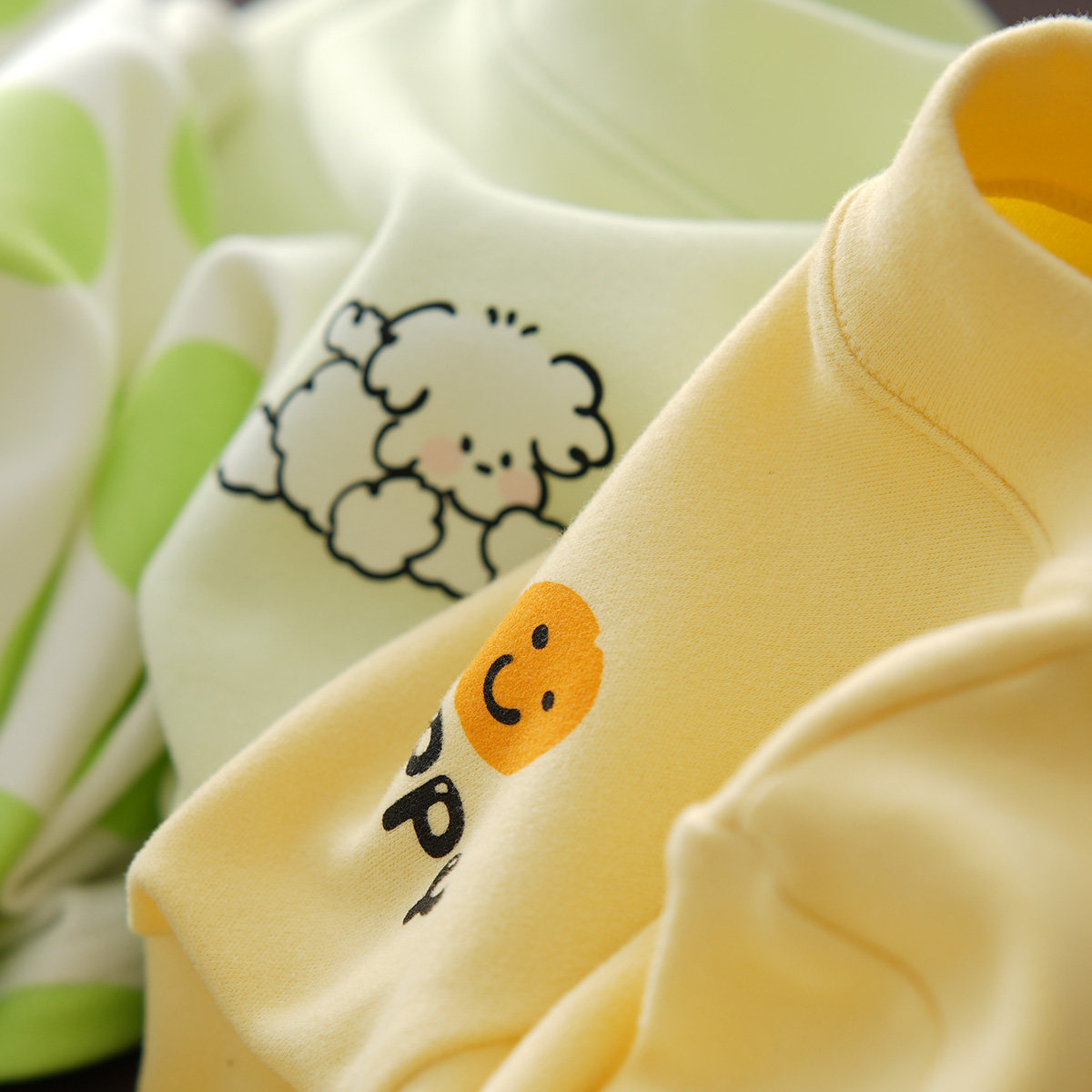 儿童磨毛卡通T恤 男童女童半高领长袖打底衫 中大童 春秋款 童装