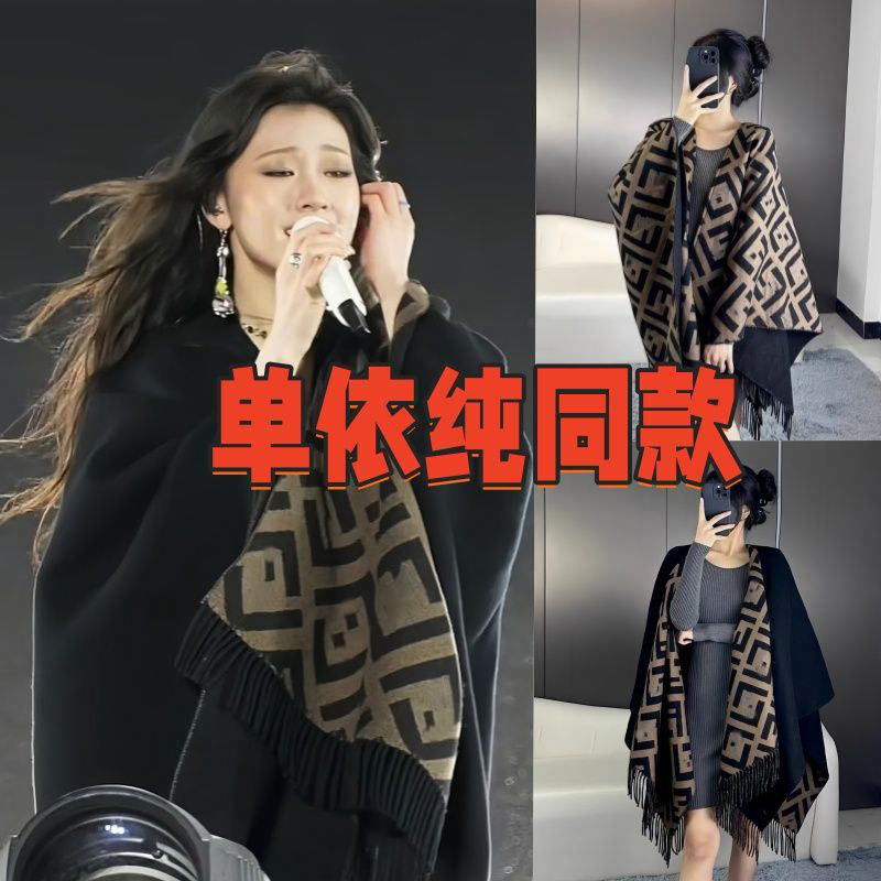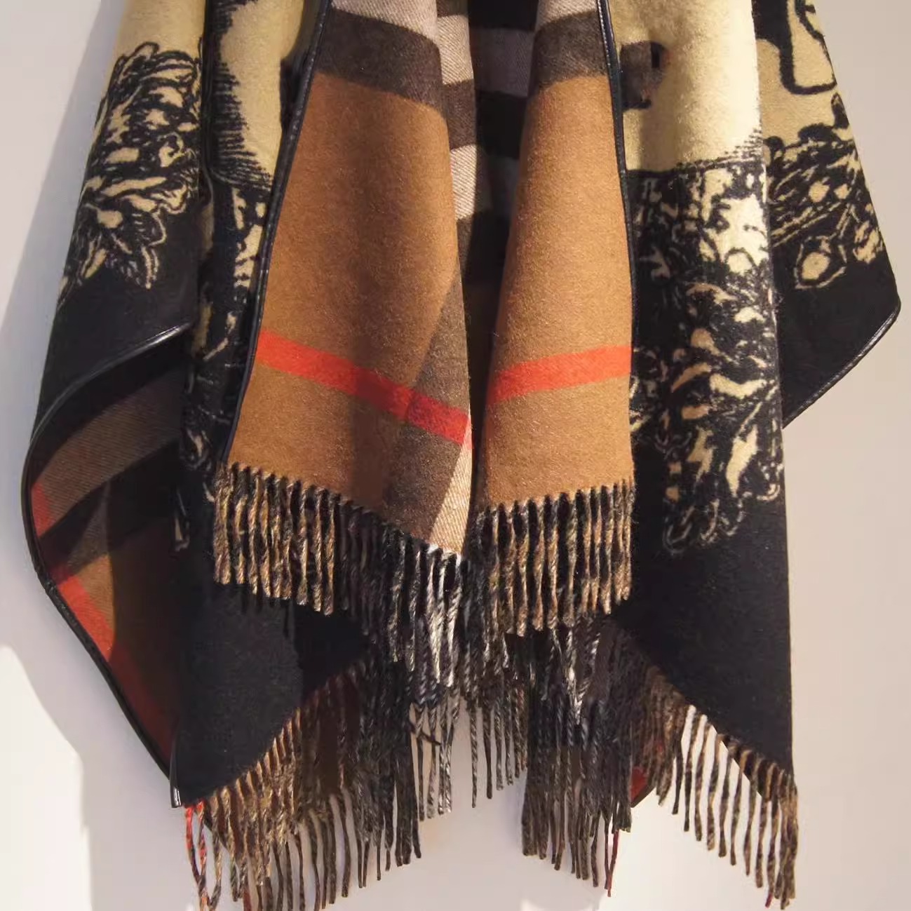 F披肩秋冬格子双面加厚羊绒斗篷保暖披肩外搭外套围巾