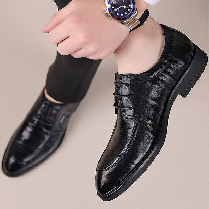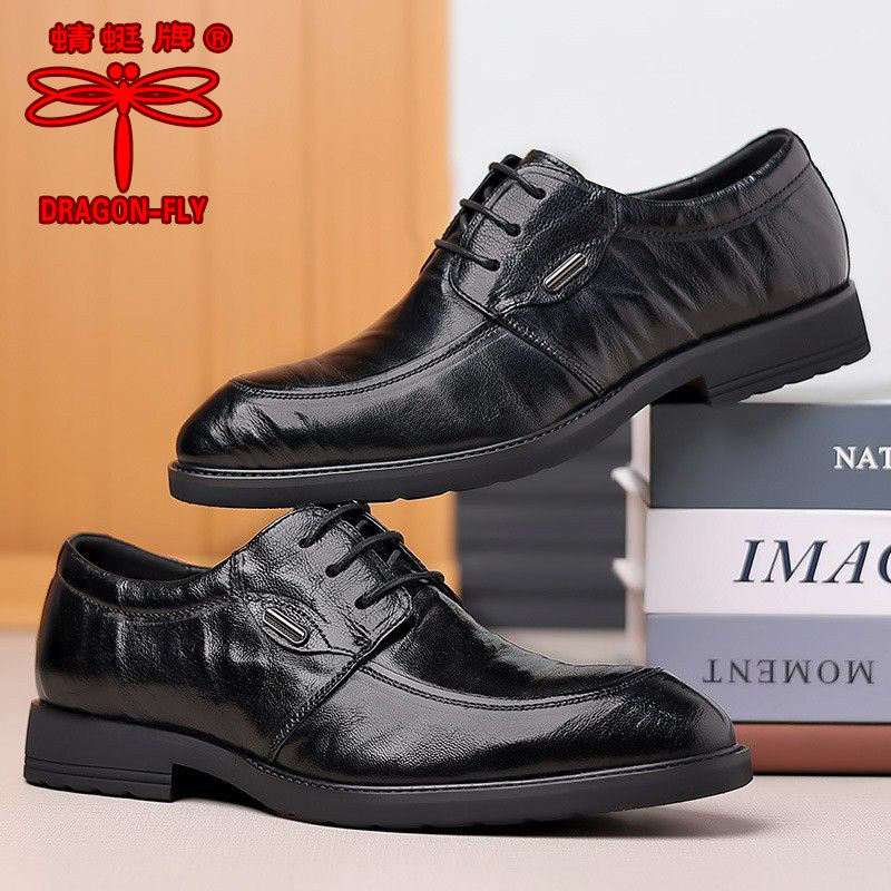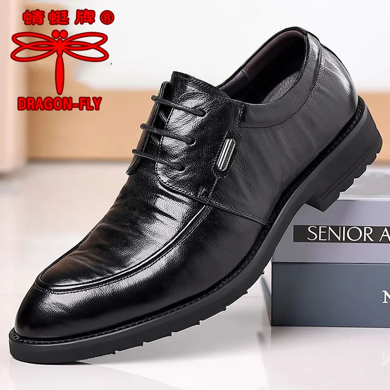 蜻蜓牌真皮男士皮鞋新款韩版正装牛皮鞋英伦商务软底耐磨结婚皮鞋