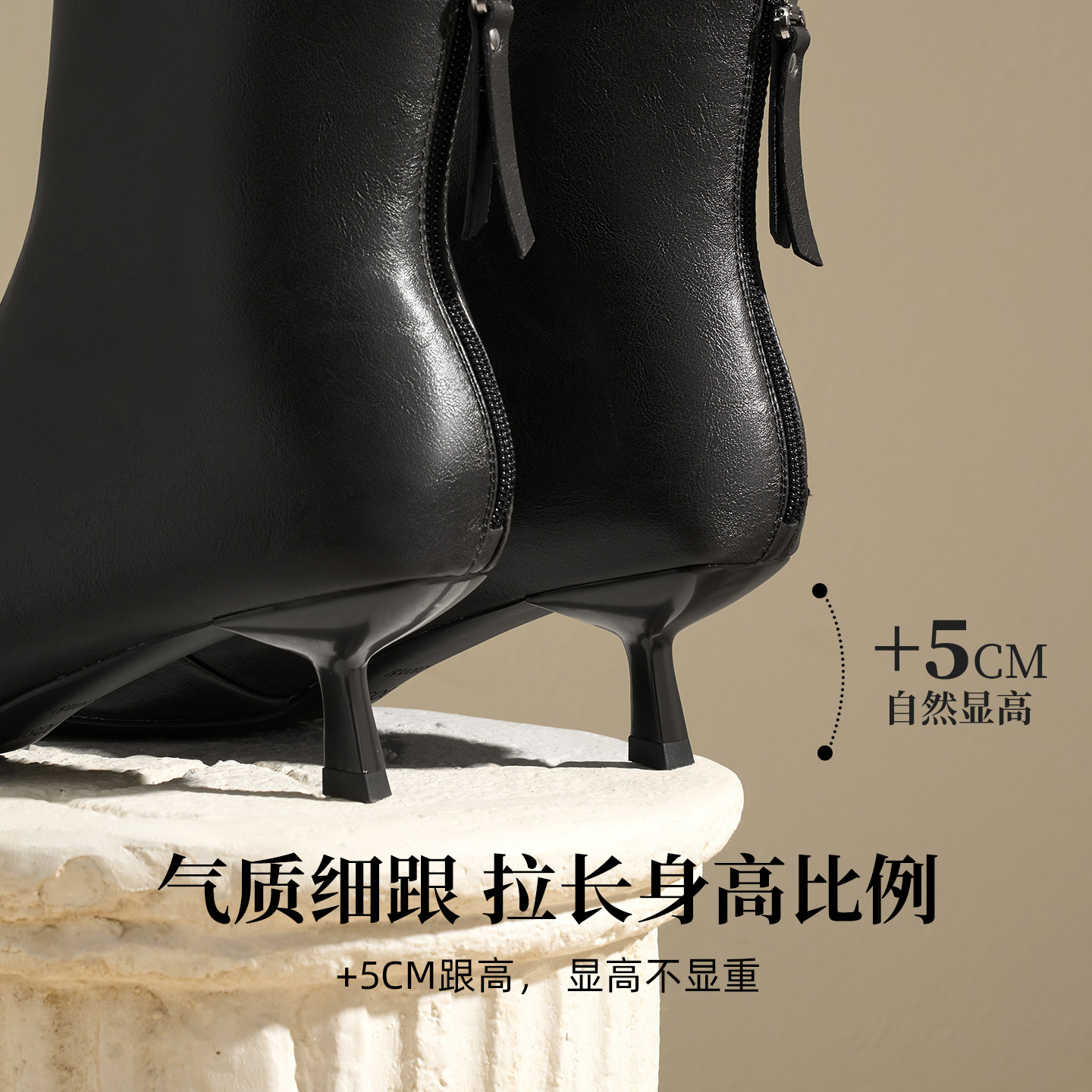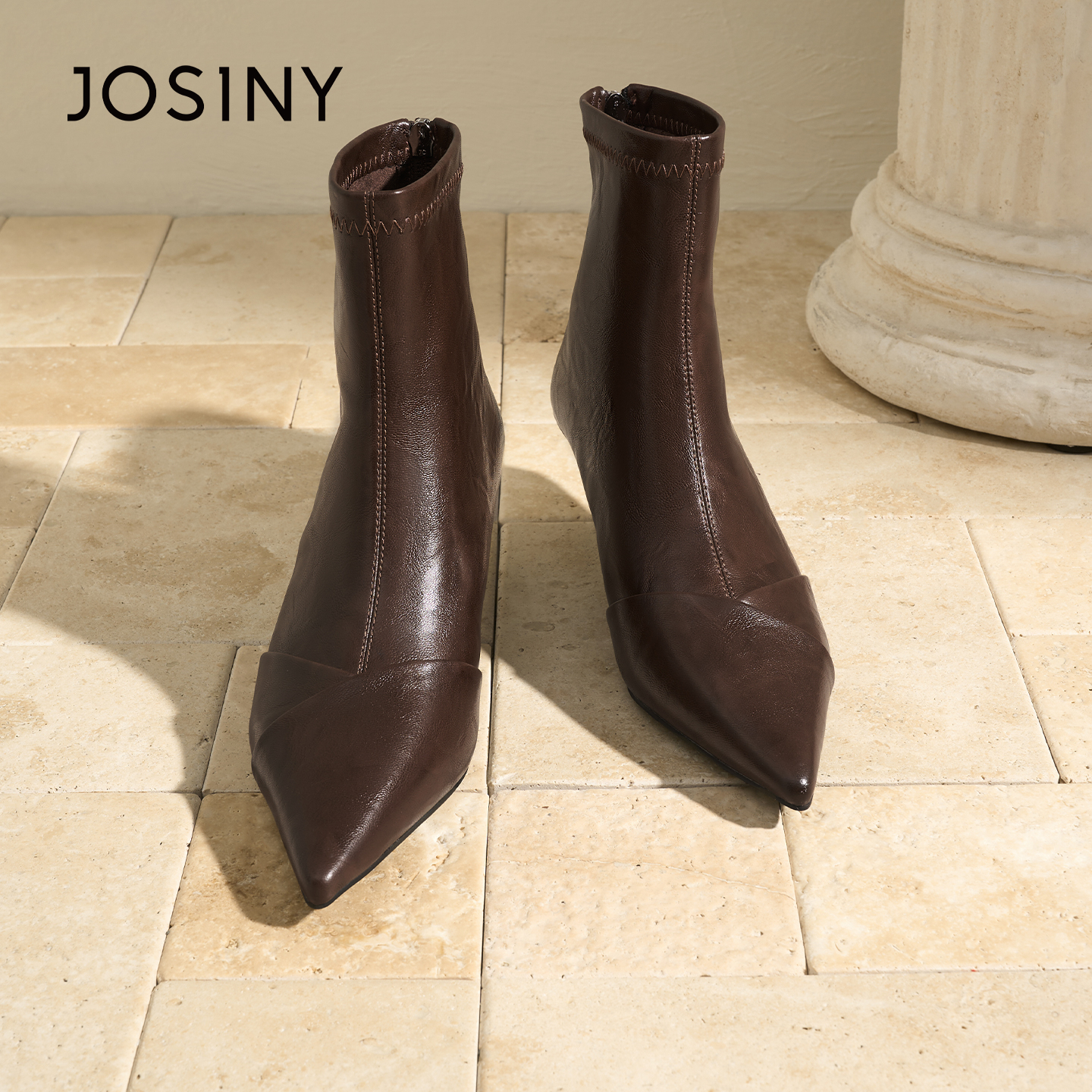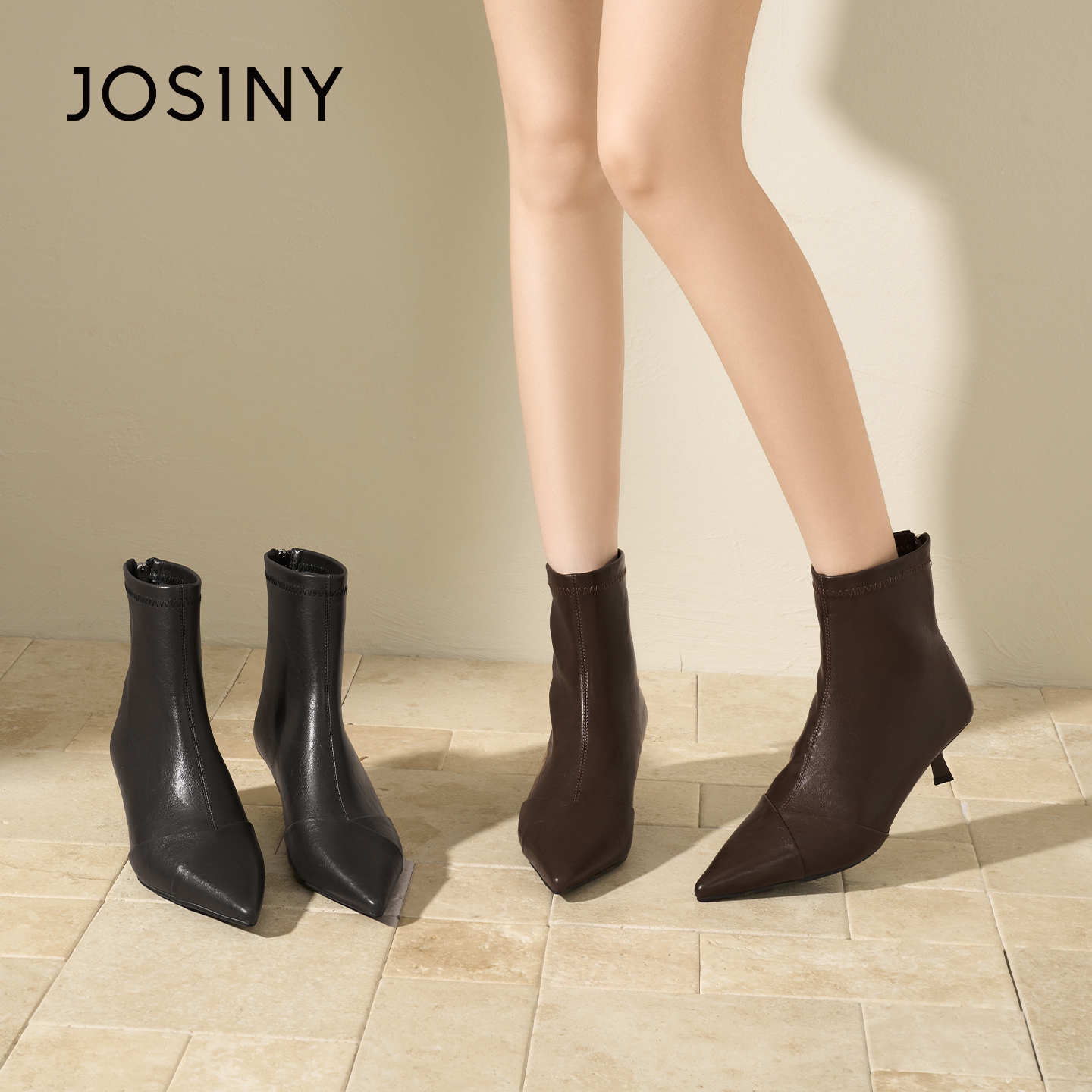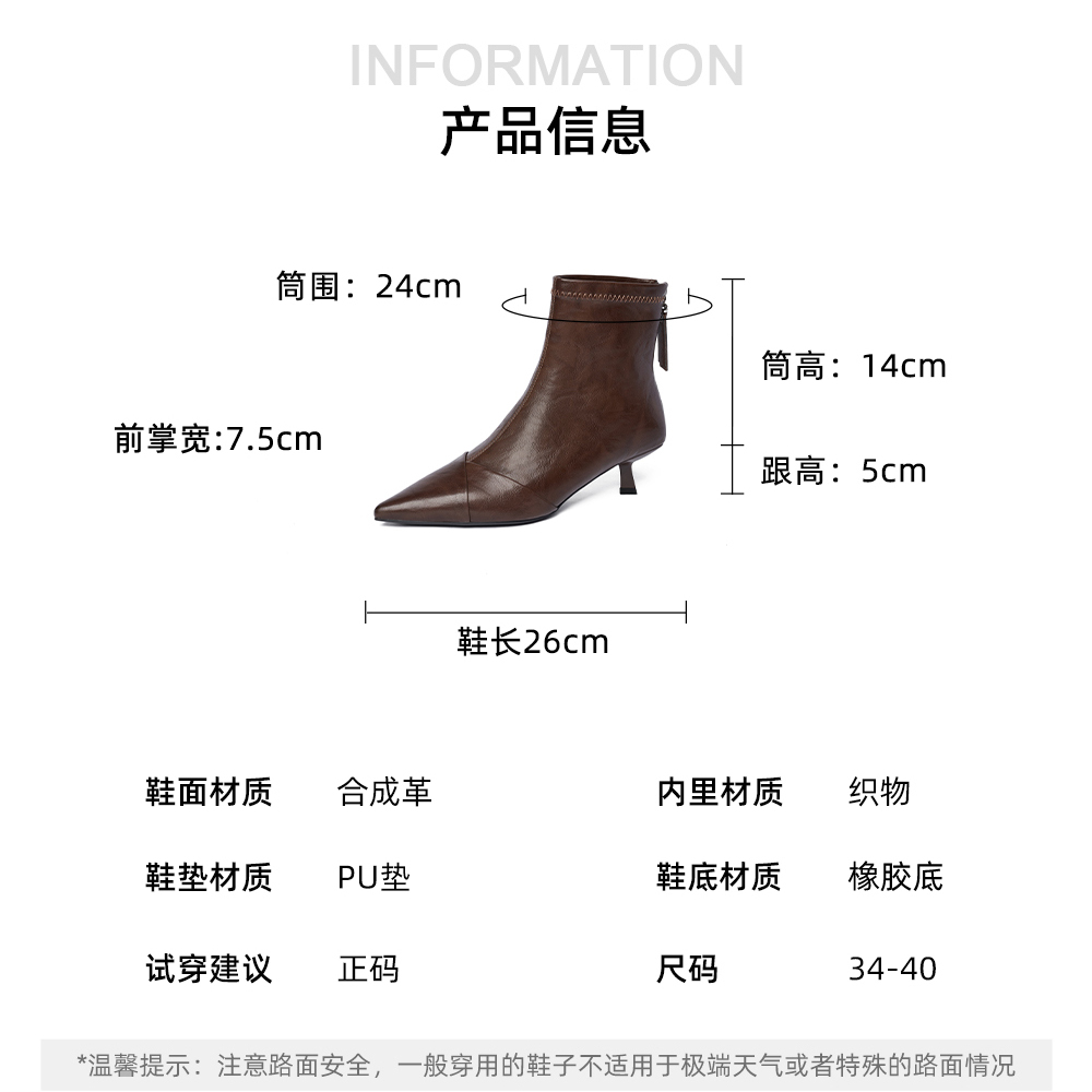 Josiny/卓诗尼JOSINY法式尖头短靴女黑色细跟瘦瘦靴时装靴不累脚