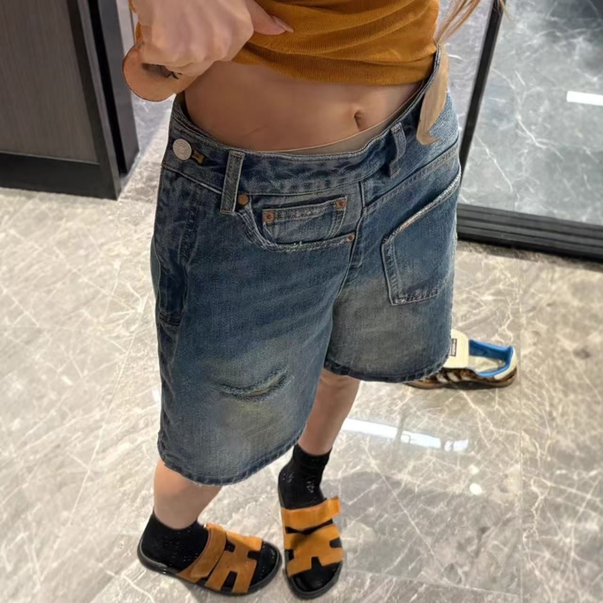 大码破洞牛仔短裤女夏季2025年新款重工旋转设计感潮流显瘦五分裤