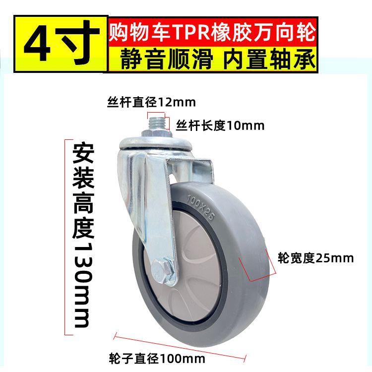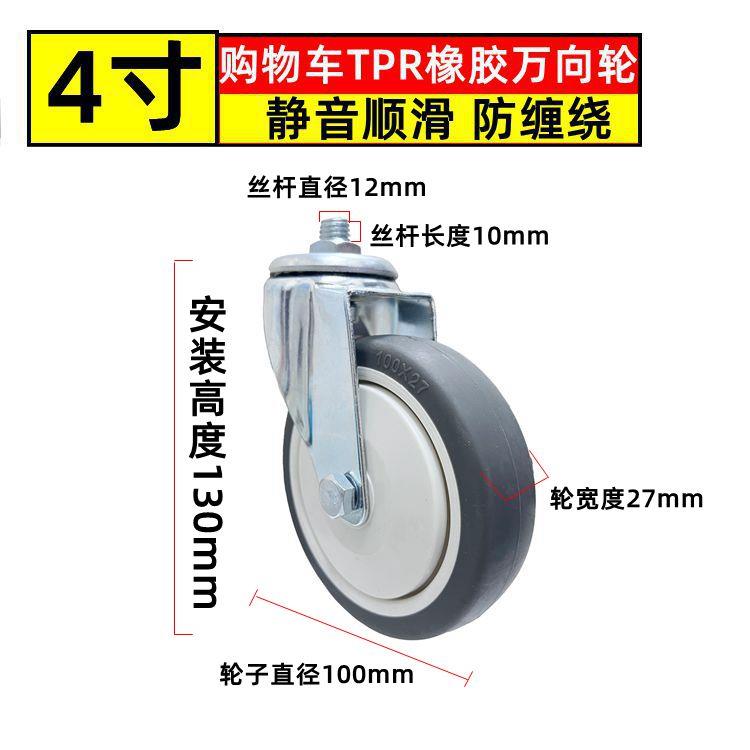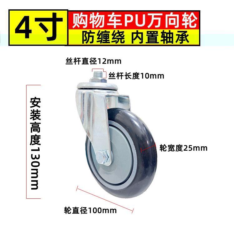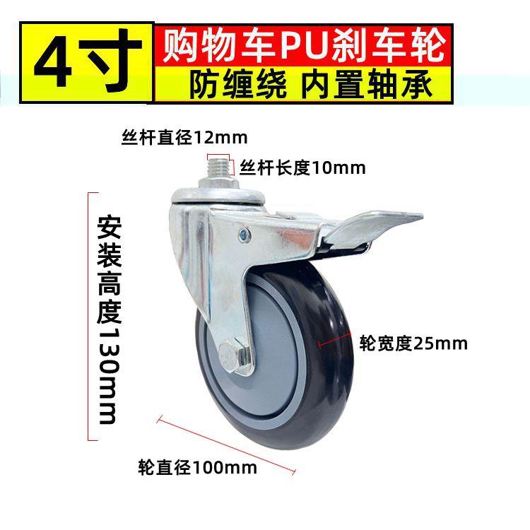 超市购物车轮子 PU聚氨酯 4寸手推车轮子 10cm静音脚轮万向轮轮子