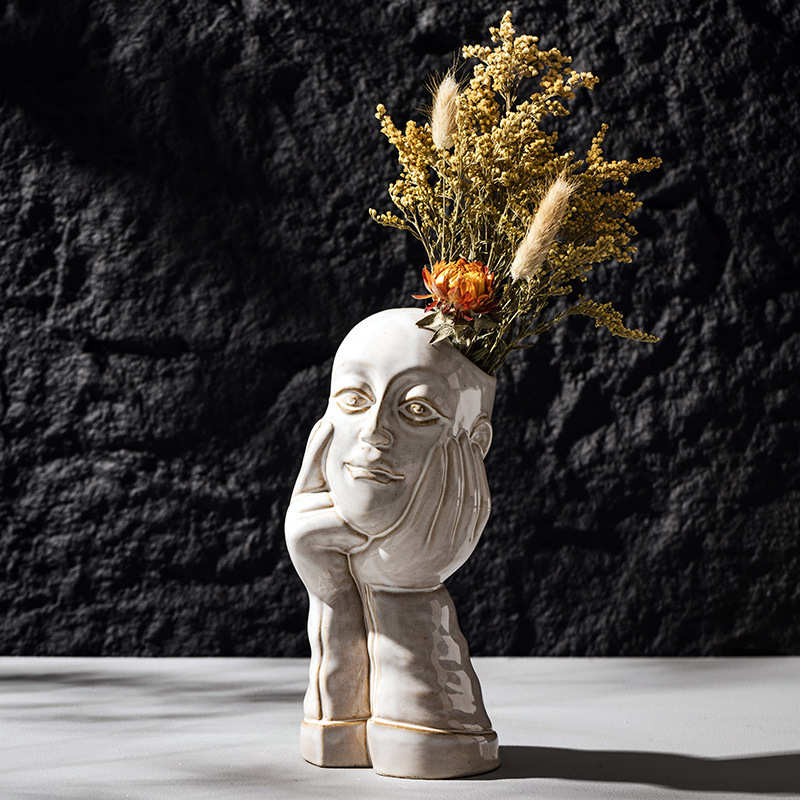 风创意奢白色欧式轻北欧陶瓷高级简约感ins花瓶家居人体摆件