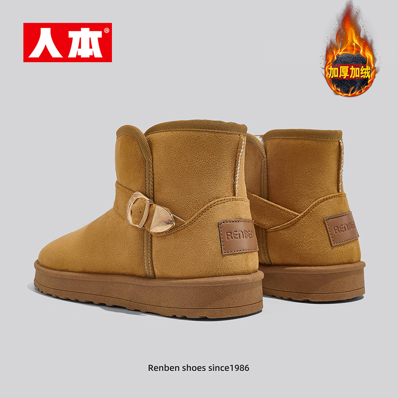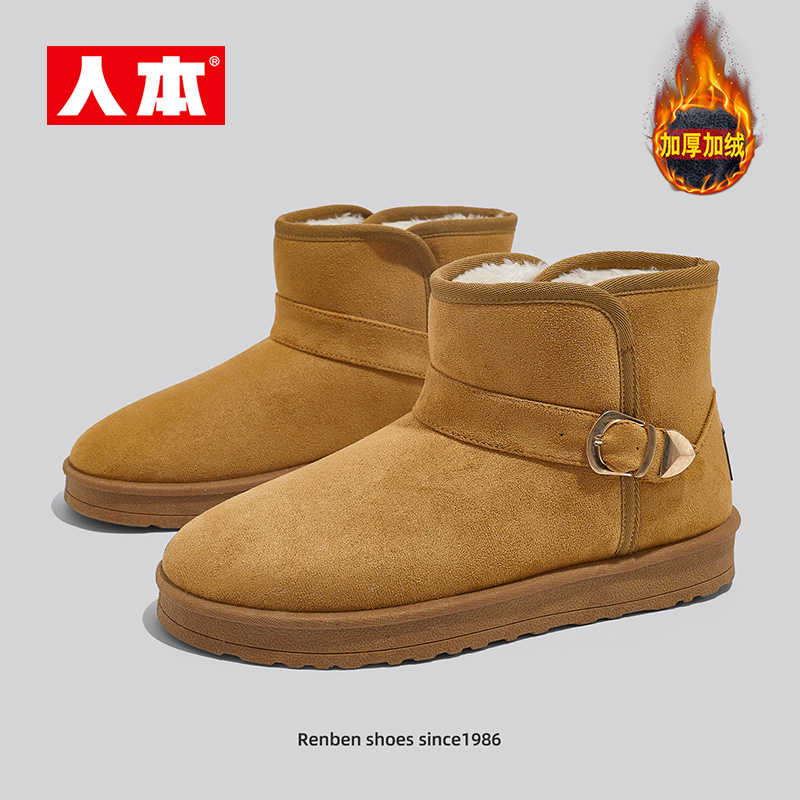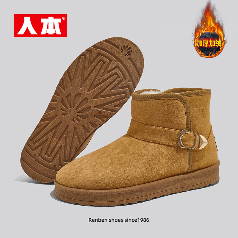 人本雪地靴男2025新款加绒加厚冬季保暖男鞋防寒软底东北户外棉鞋