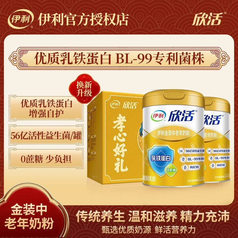 伊利欣活金装中老年奶粉800g罐益生菌0蔗糖添加乳铁蛋白健康营养