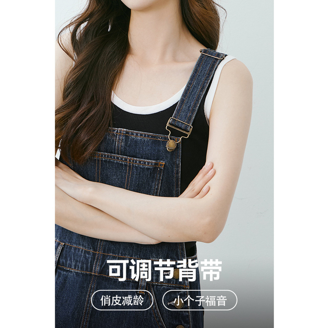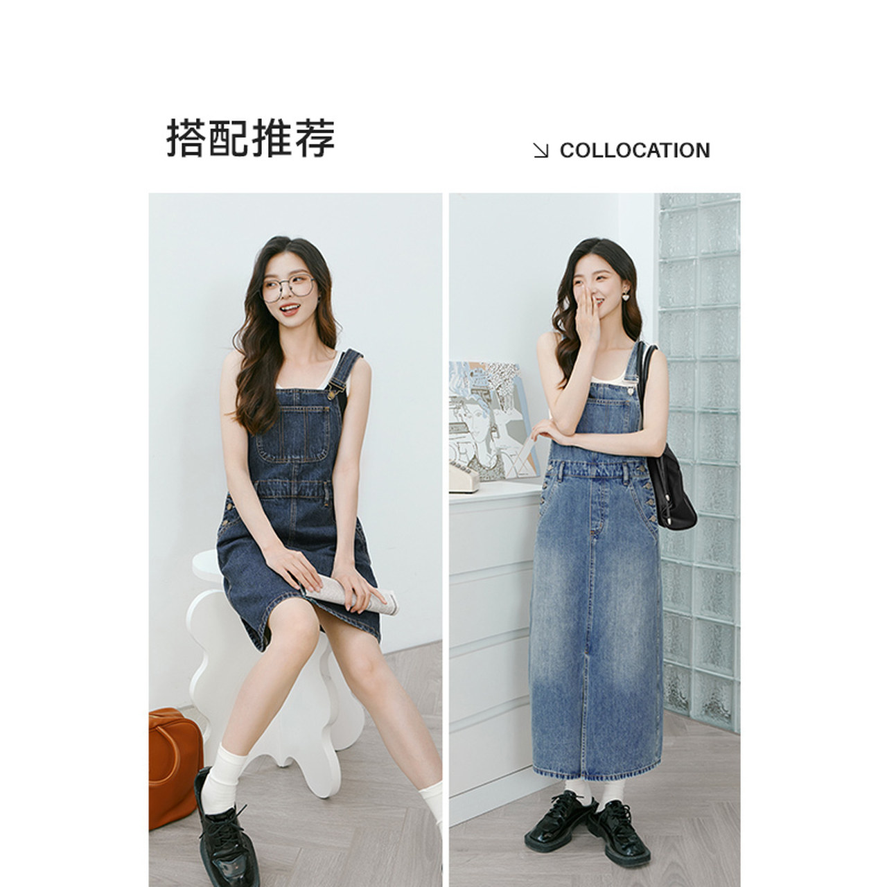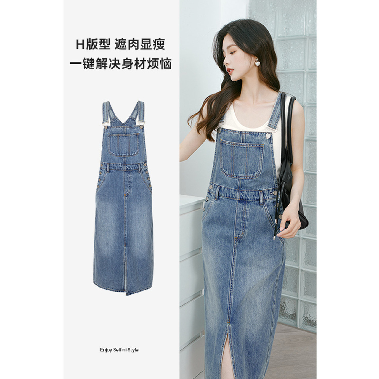 诗凡黎学院风美式复古蓝色H版型牛仔背带连衣裙女伊芙丽outlets店