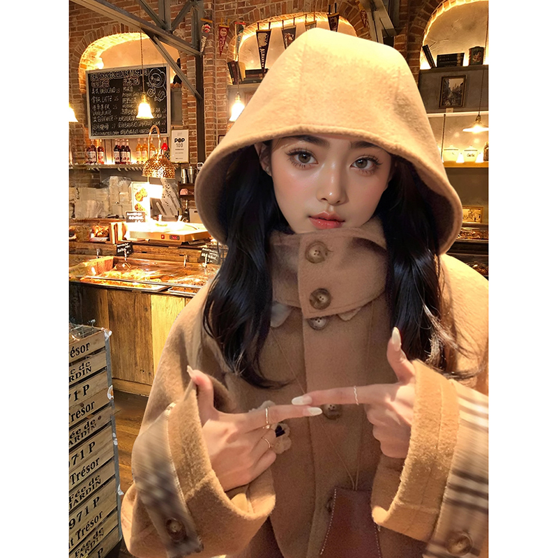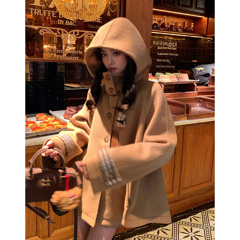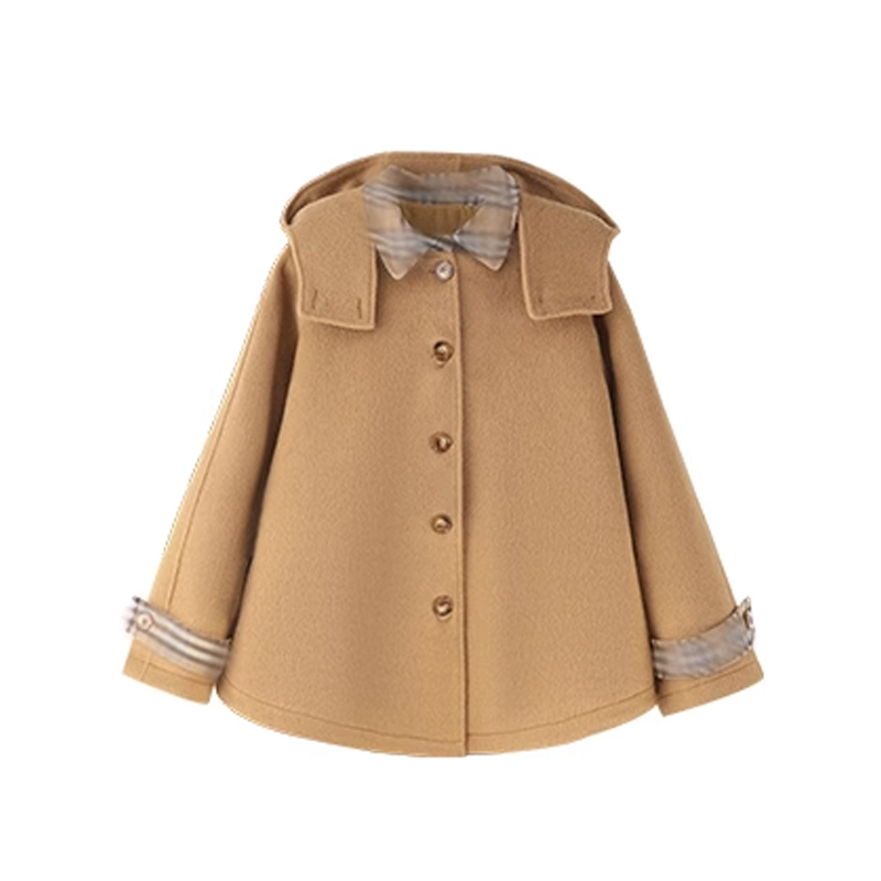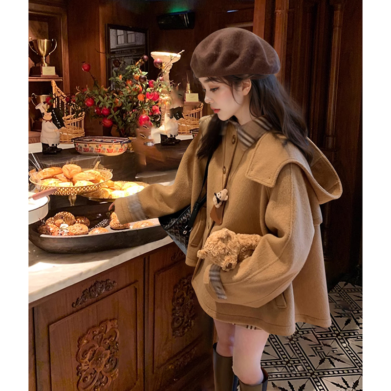 布拉格广场 格纹斗篷毛呢大衣+格纹半裙两件套气质氛围感秋冬套装