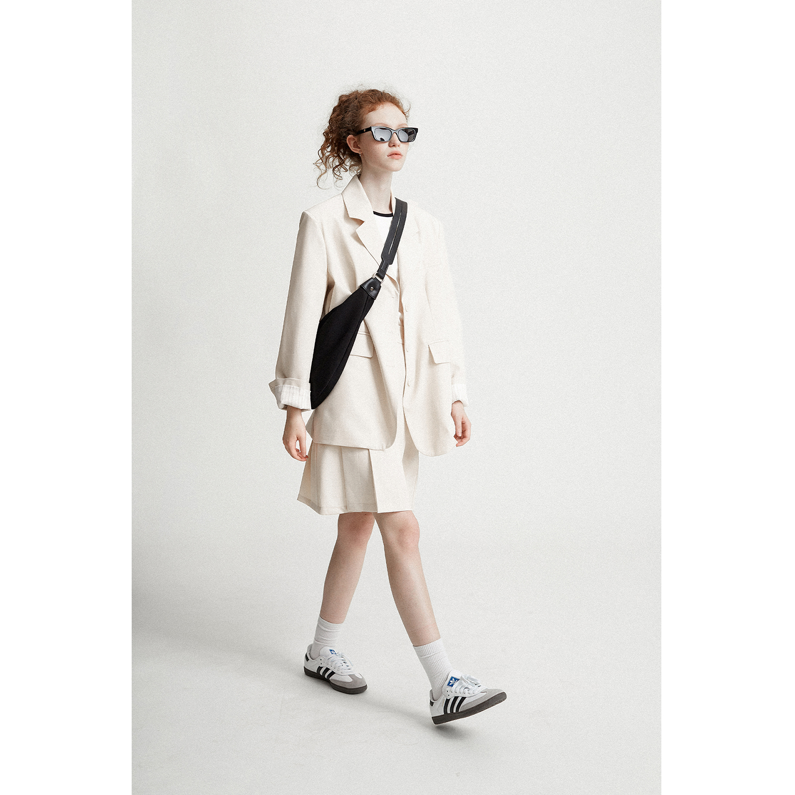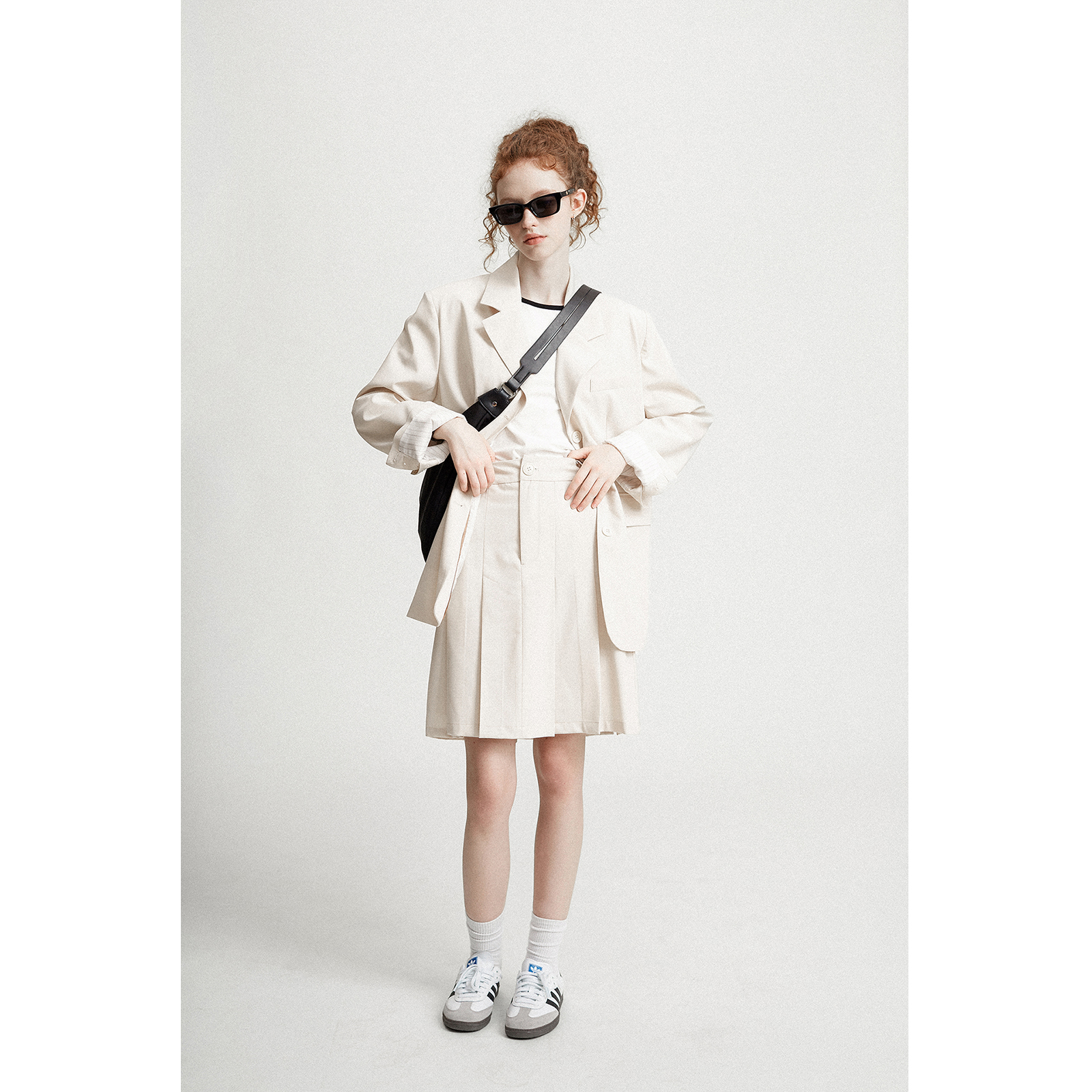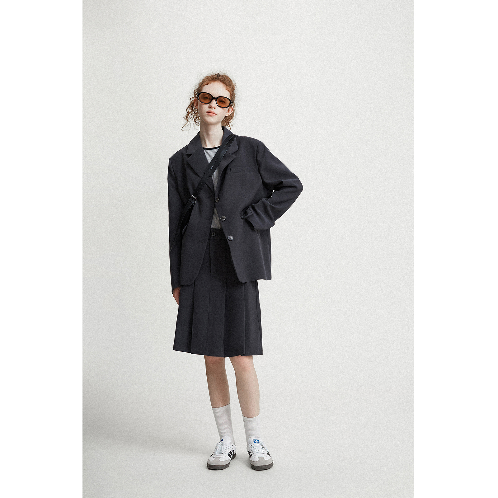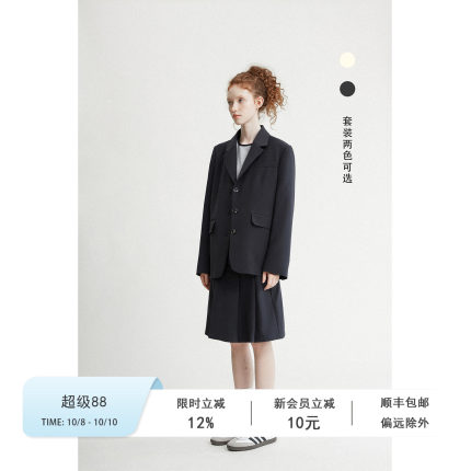 Veega Chic AW两色学院风显背薄女子百褶半裙/西装上衣外套套装