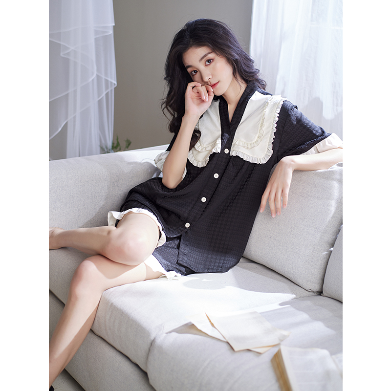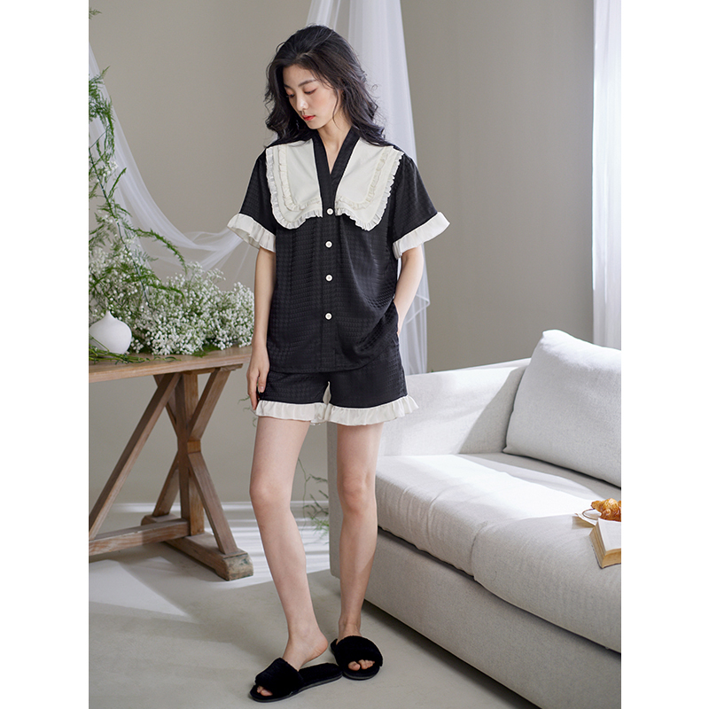 WYMT睡衣女夏季冰丝夏天丝绸可外穿高级感娃娃领短袖短裤家居服