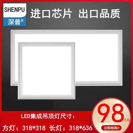 318x318*636适用法狮龙美尔雅集成吊顶厨房卫生间LED灯平板灯嵌入