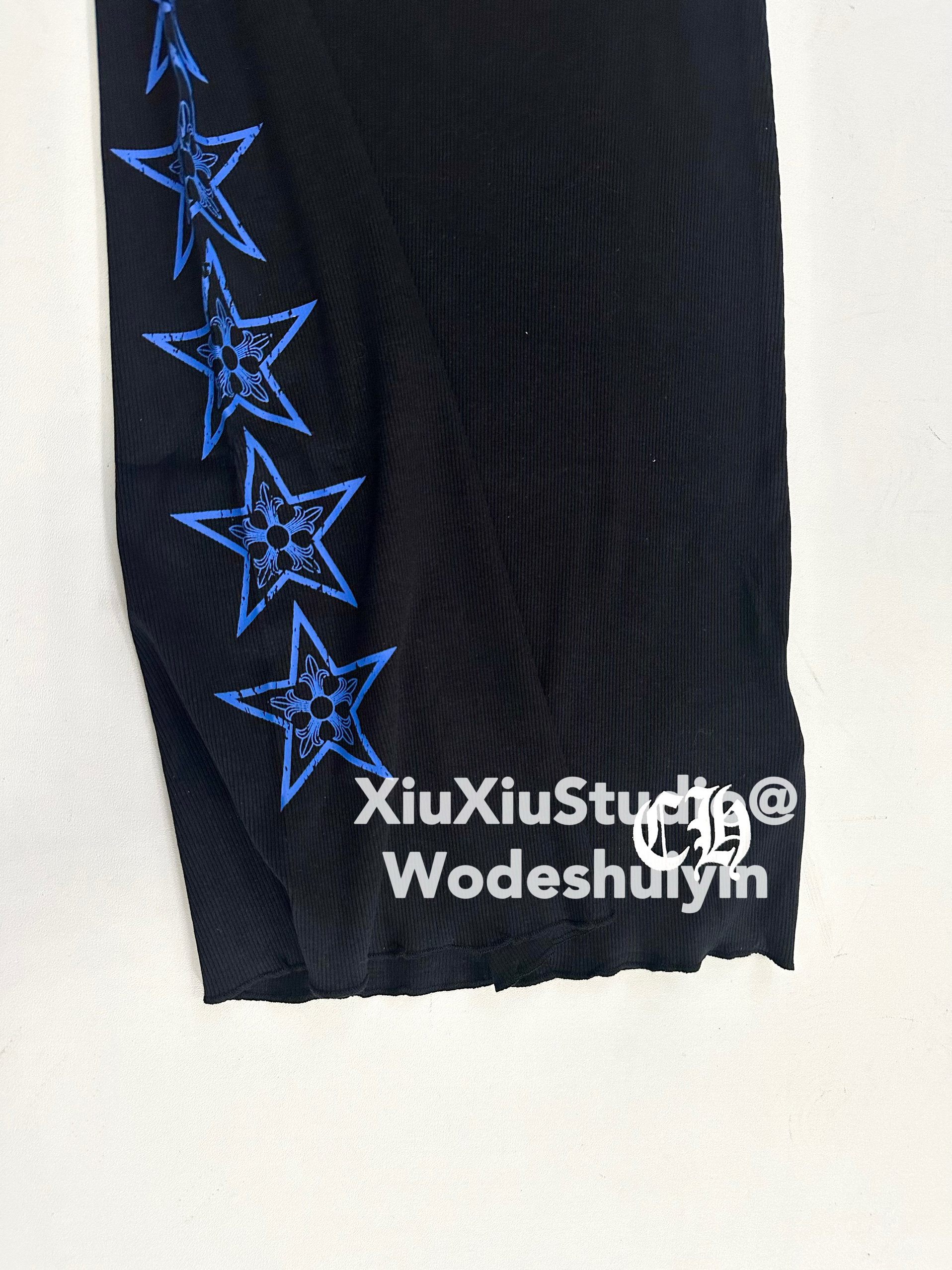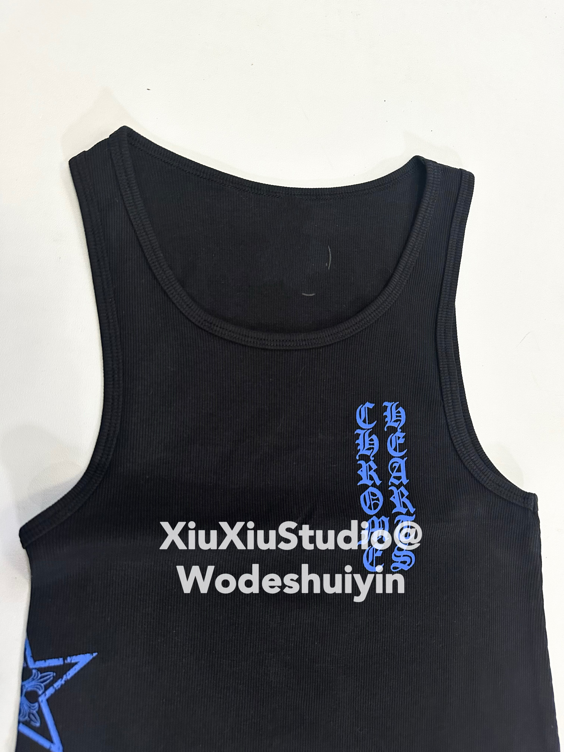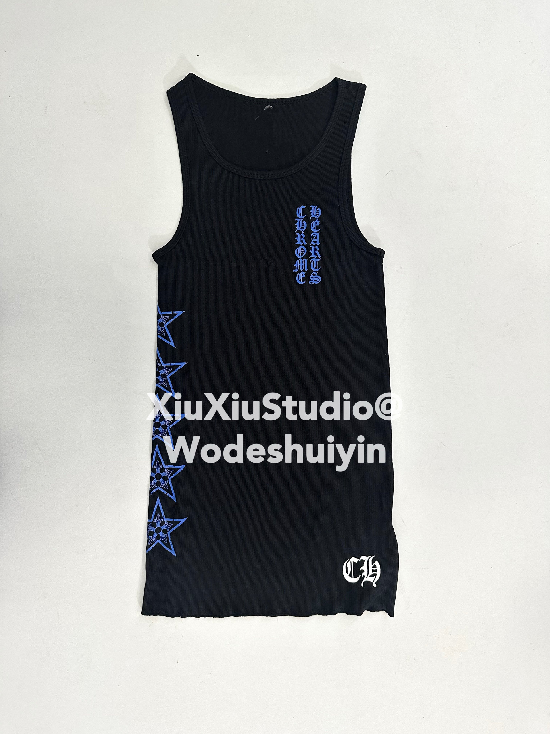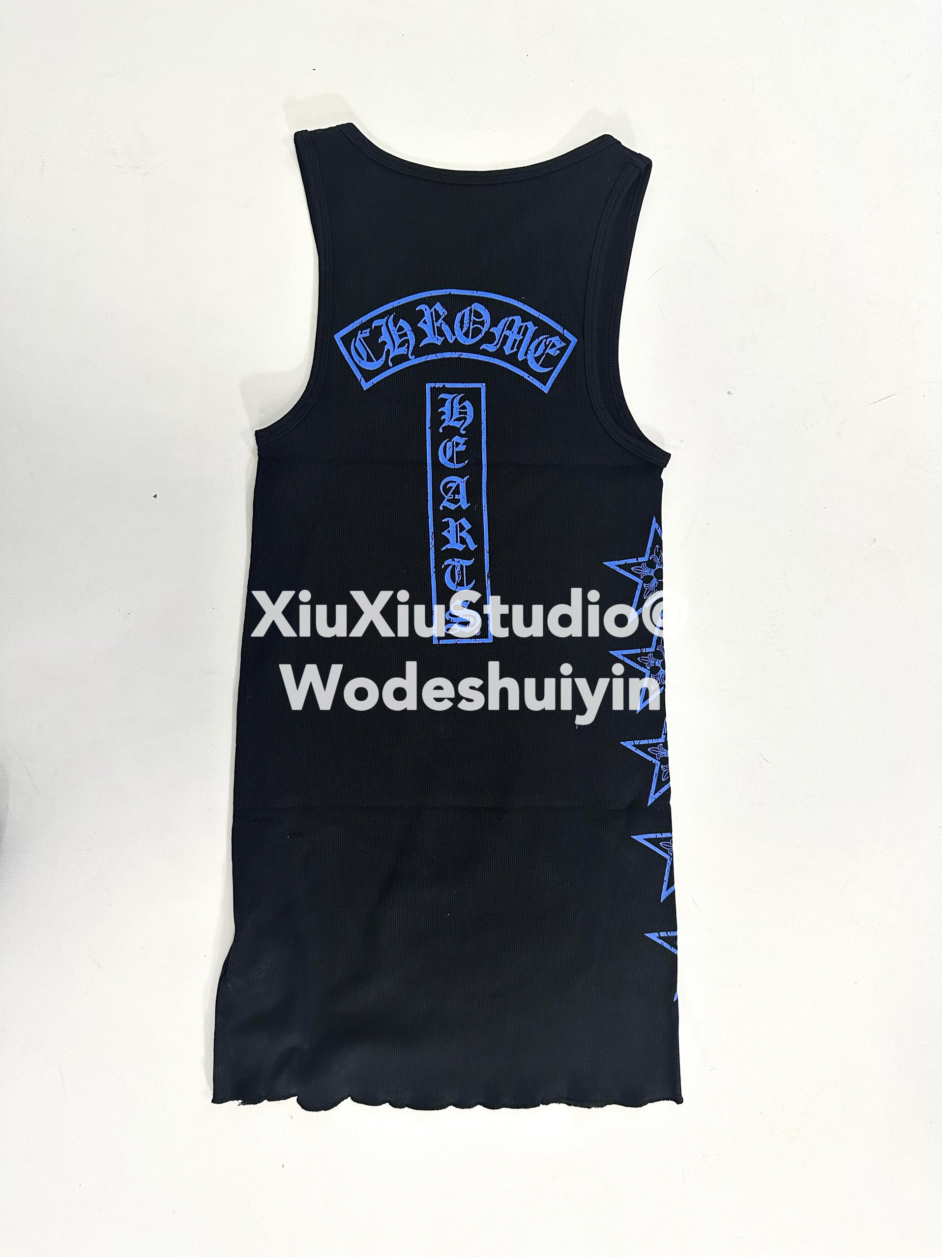 xiuxiustudio自主黑蓝配色五角星印花中长款背心修身显瘦吊带裙潮