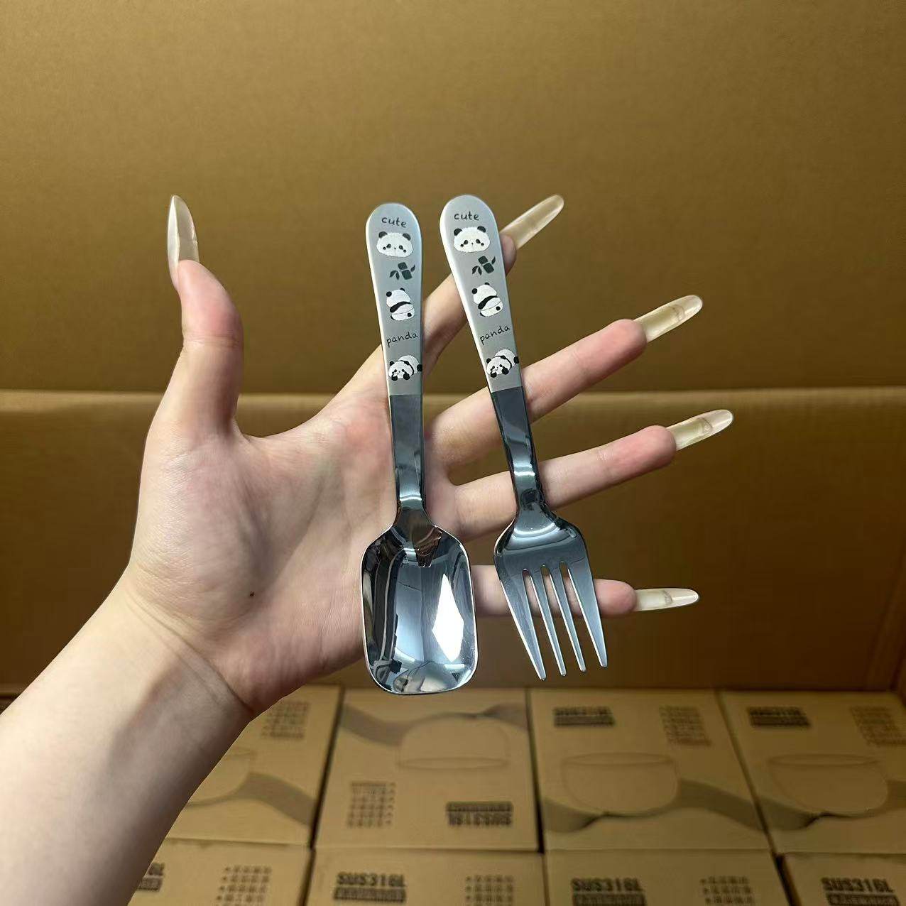颜一好316不锈钢儿童餐具叉勺套装可爱学生便携个人专用餐具套装