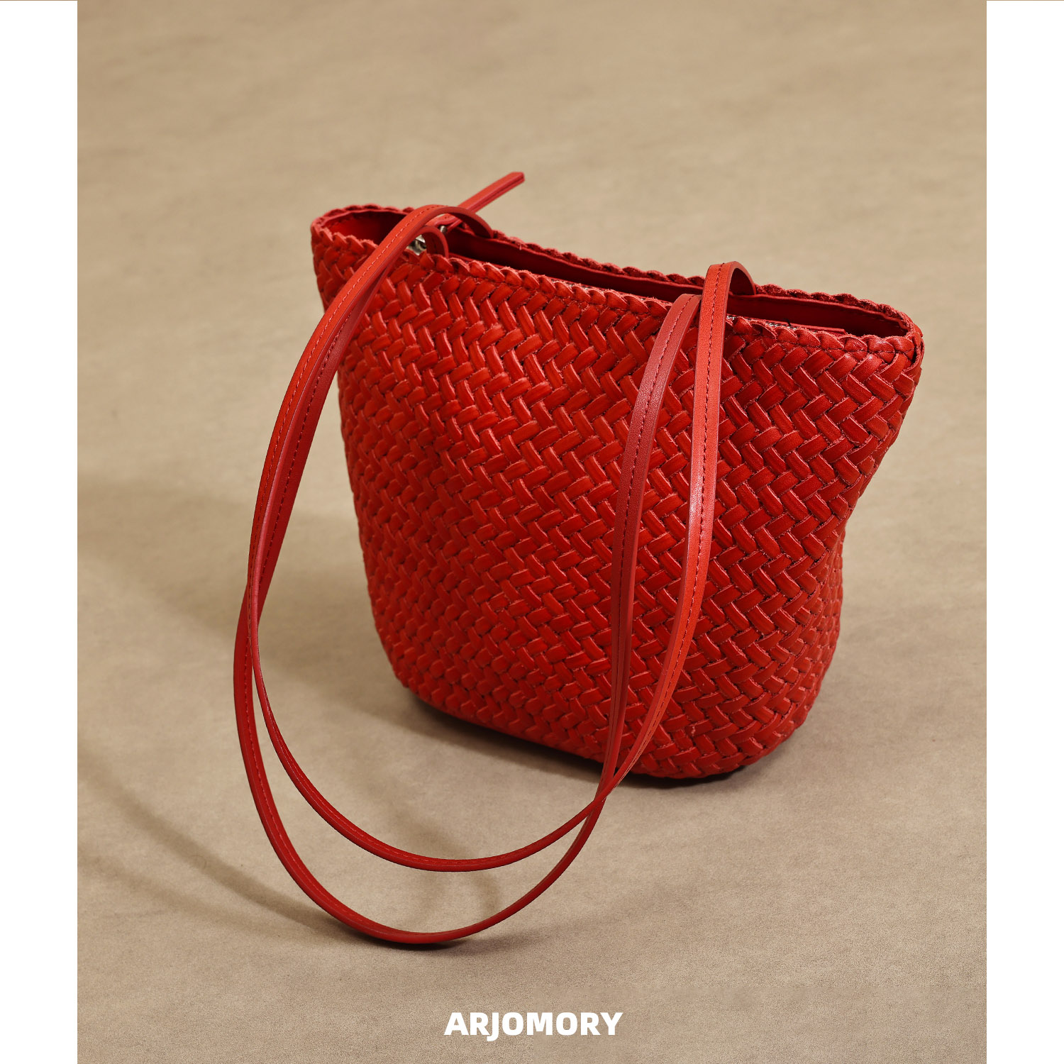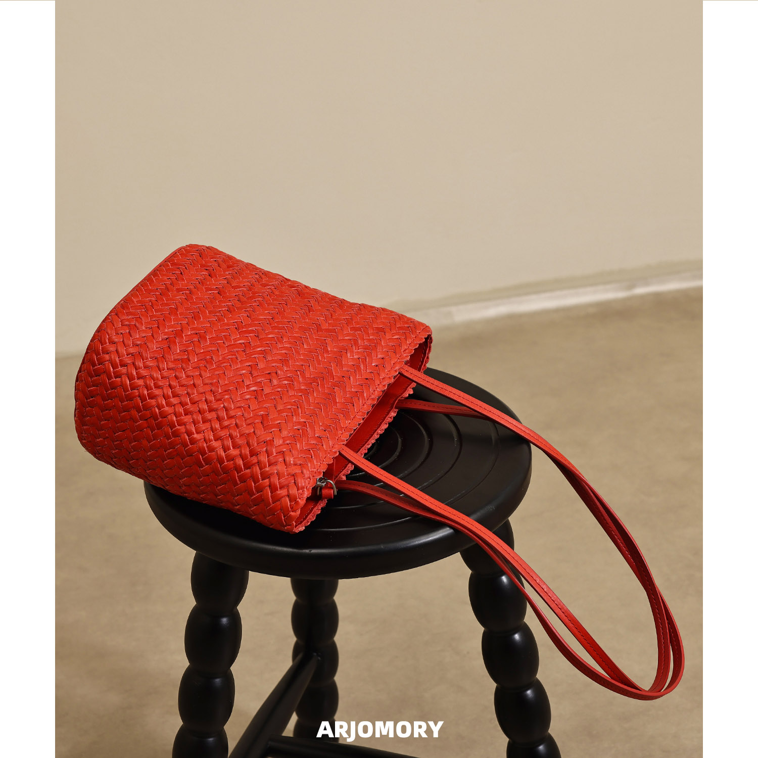 ARJOMORY小众设计时尚层牛皮手工编织女包2025新款复古百搭单肩包