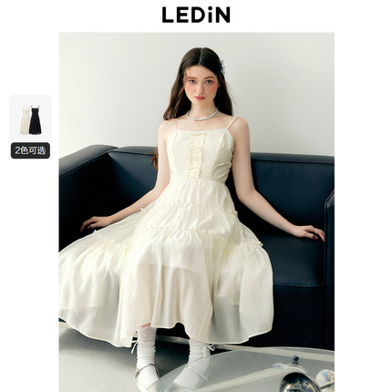 乐町精致吊带连衣裙春季新款飘逸仙女长裙香风气质内搭连衣裙