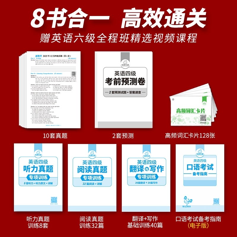 华研外语四级英语考试真题试卷备考2026年6月大学英语四六级历年真题词汇单词书阅读理解听力翻译专项训练学习资料cet4级作文写作