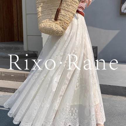 法国Rixo Rane蕾丝打底半身裙女镂空大摆半裙高腰显廋A字网纱长裙