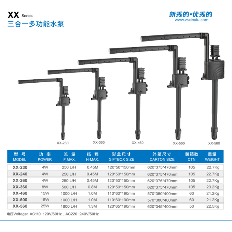 新秀通用水泵360/460/560鱼缸潜水泵三合一静音增氧水族箱抽水泵