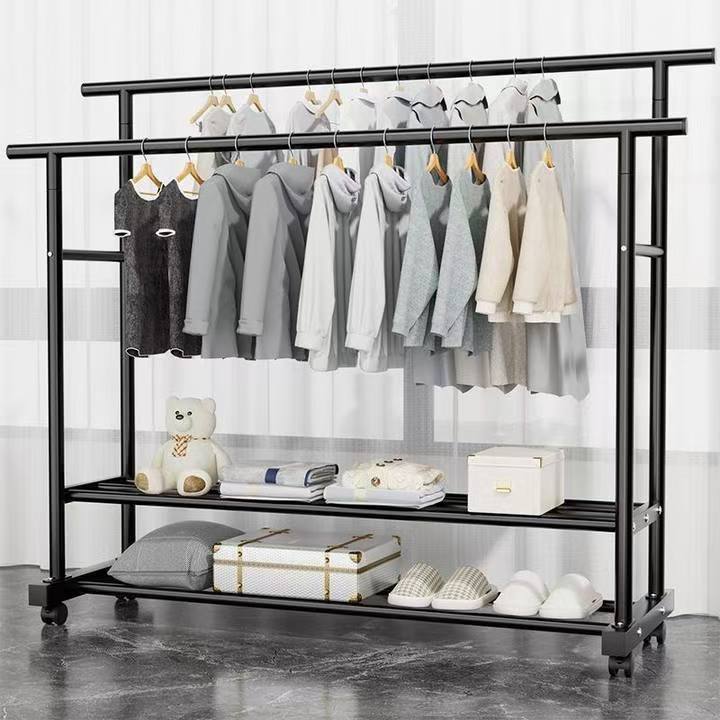 新款特粗晾衣架双杆衣帽架落地立式家用卧室阳台25管挂衣架特厚