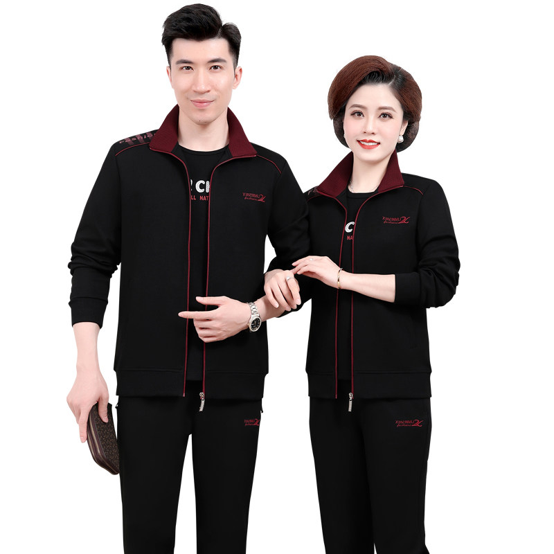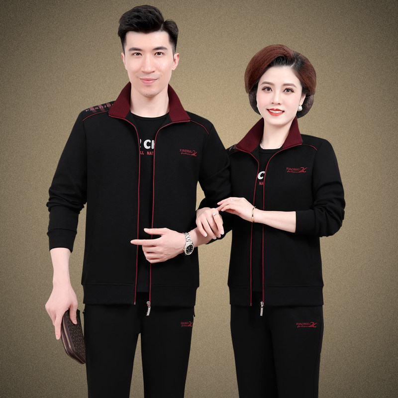 中老年情侣装秋季运动服休闲外套男女中年人爸爸妈妈卫衣三件套装