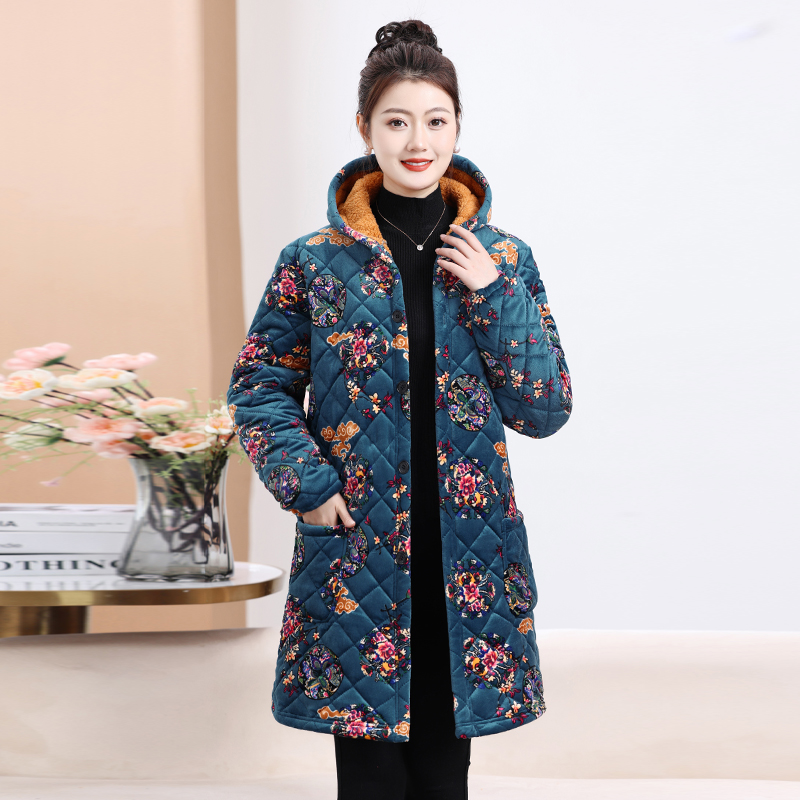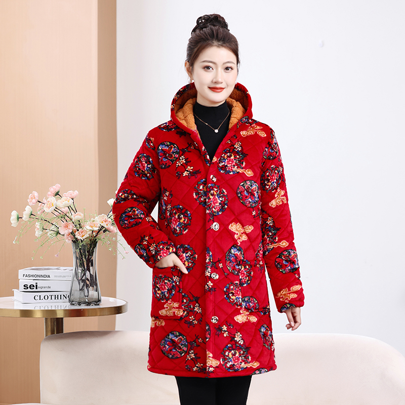 加绒加厚女装罩衣外套冬季新款妈妈保暖宽松大码防脏女中长款棉衣