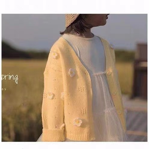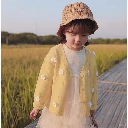 2025春秋女童中小童宝宝花朵毛衣开衫儿童针织衫洋气童装春款外套
