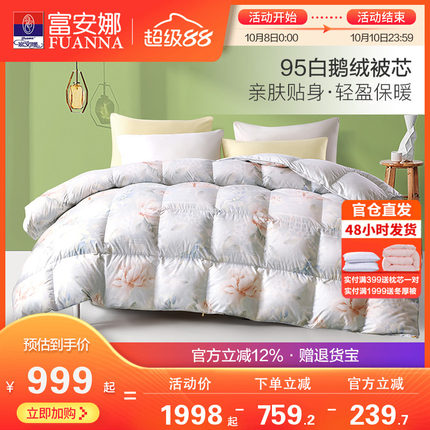 富安娜羽绒被95白鹅绒被子春秋四季被芯子母二合一被冬厚空调夏被