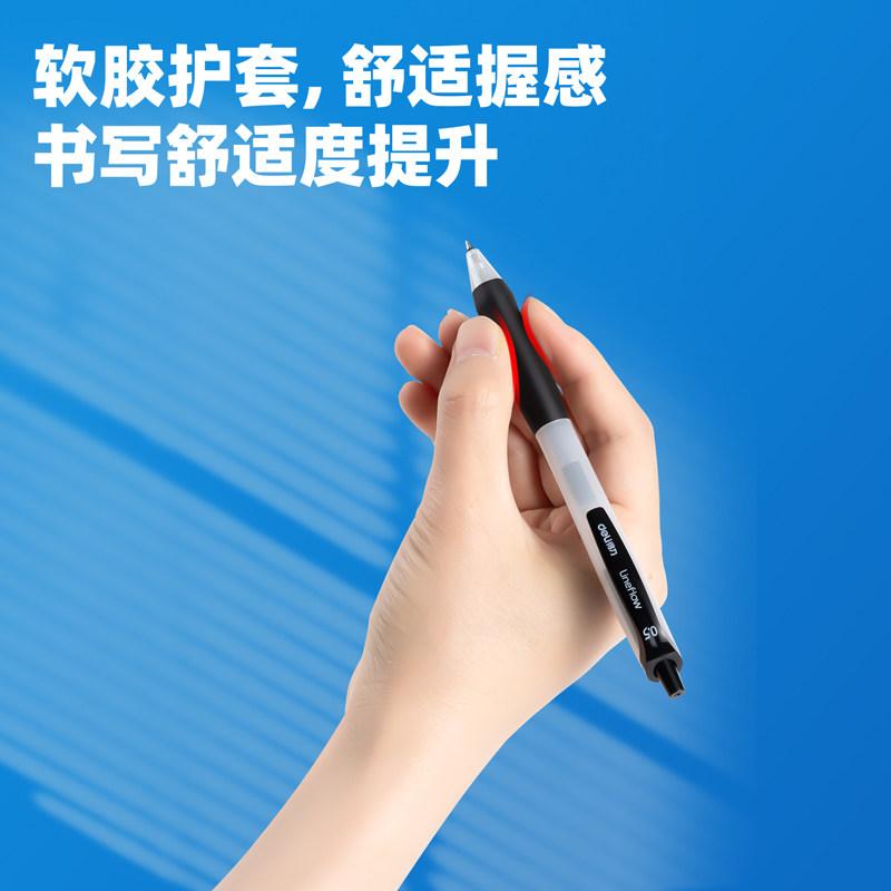 得力A08按动中性笔学生考试刷题子弹头签字笔0.5mm顺滑中性笔