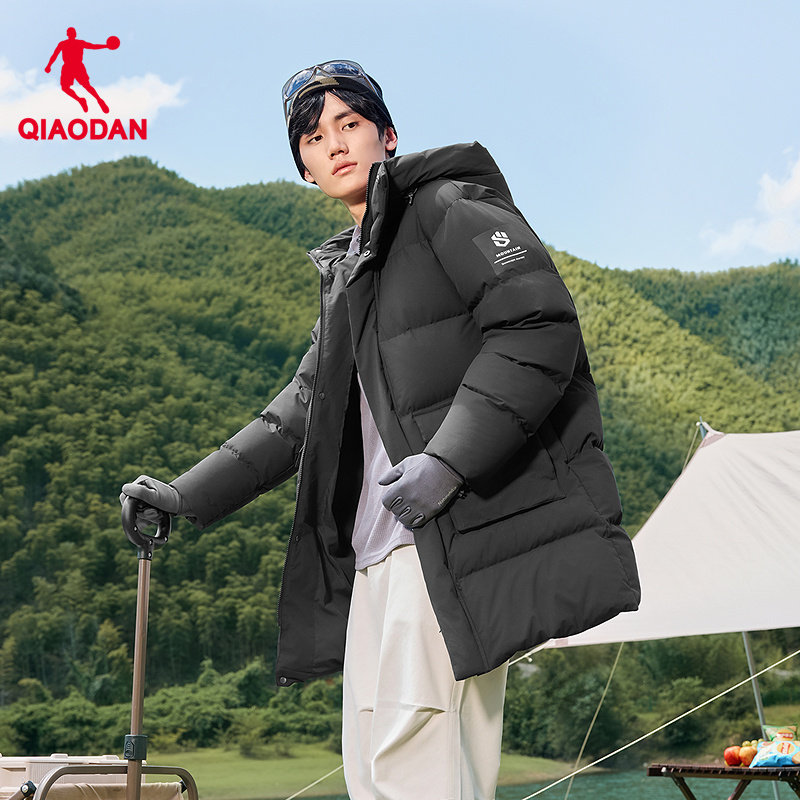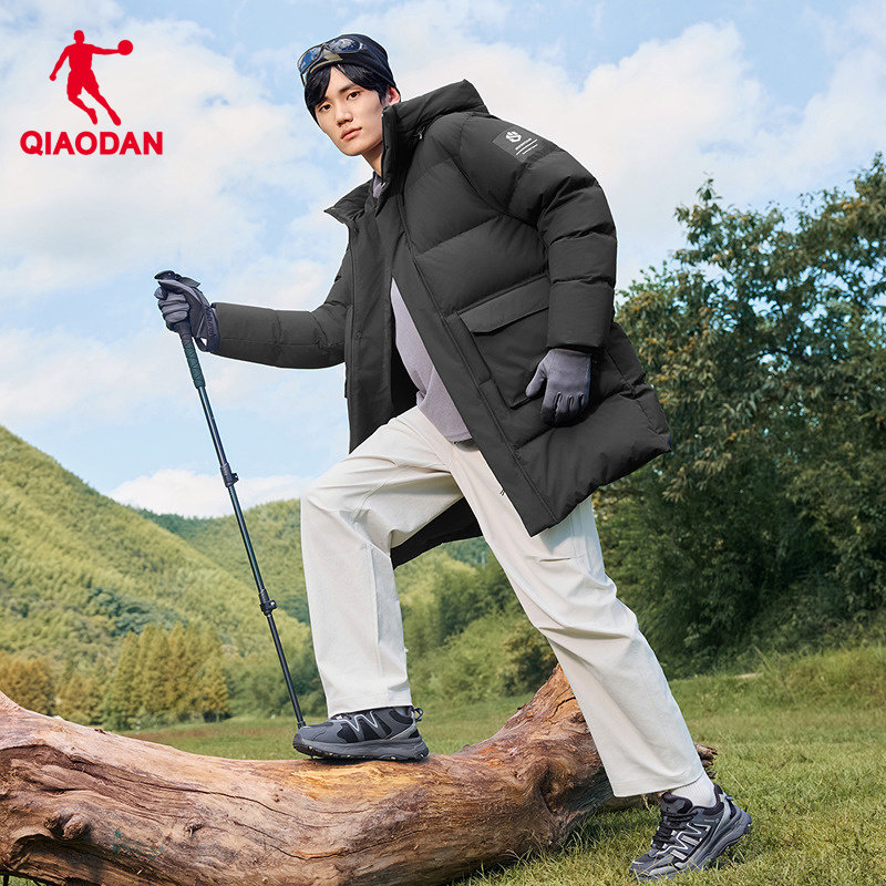 乔丹羽绒服中长款男士2025冬季新款防泼水抗静电防风保暖户外外套